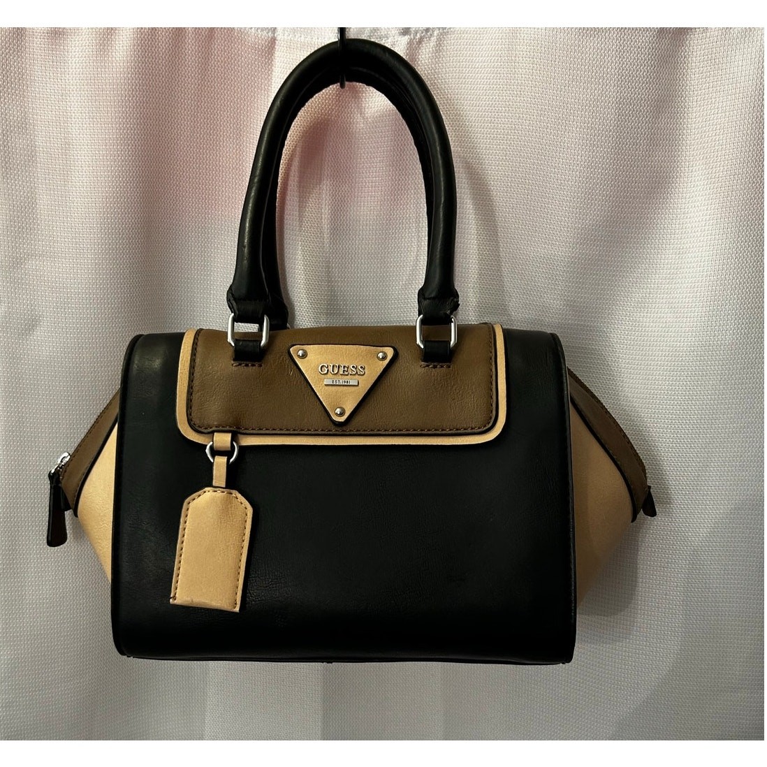 Hello there, fashion lover! You're looking at a fantastic Guess handbag that's ready to add a touch of chic to your wardrobe. This lovely accessory is perfect for carrying all your essentials while adding a stylish flair to any outfit. Its design is classic Guess, known for blending practicality with trendy aesthetics. This handbag has been previously loved and shows some imperfections, as highlighted in the detailed pictures. These signs of wear in no way detract from its overall charm and functionality. It still has plenty of life left to be your go-to bag for everyday outings or special occasions. It's a wonderful opportunity to own a stylish Guess piece at an incredible value. Don't miss out on making this beautiful bag yours today! Please examine all photos carefully to appreciate its current condition. We're sure you'll adore it!