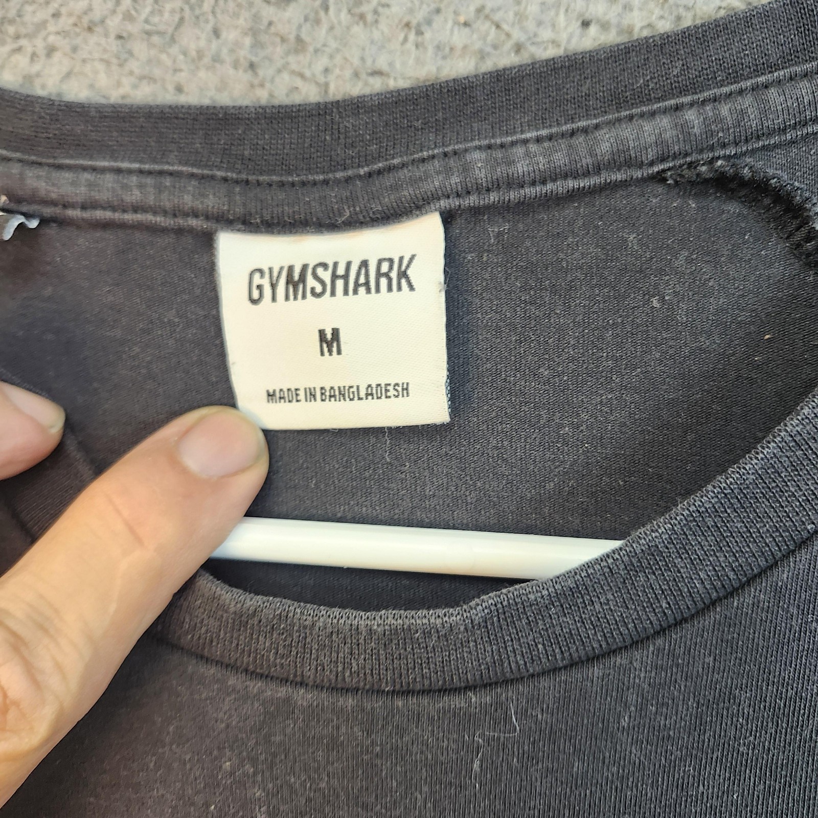 Brand: Gymshark Item: Long sleeve crewneck shirt Color: Black Design: Large GYMSHARK spell-out logo on chest Details: Raglan sleeves for mobility; small Gymshark logo tab at collar seam Tag size: M (Mens Medium) Country of origin: Made in Bangladesh (per inner tag) Style/Use: Athletic training/fitness top with a slim, performance-oriented fit Notes: Ruler shown in photos for sizing reference only; please compare to a similar garment for best fit