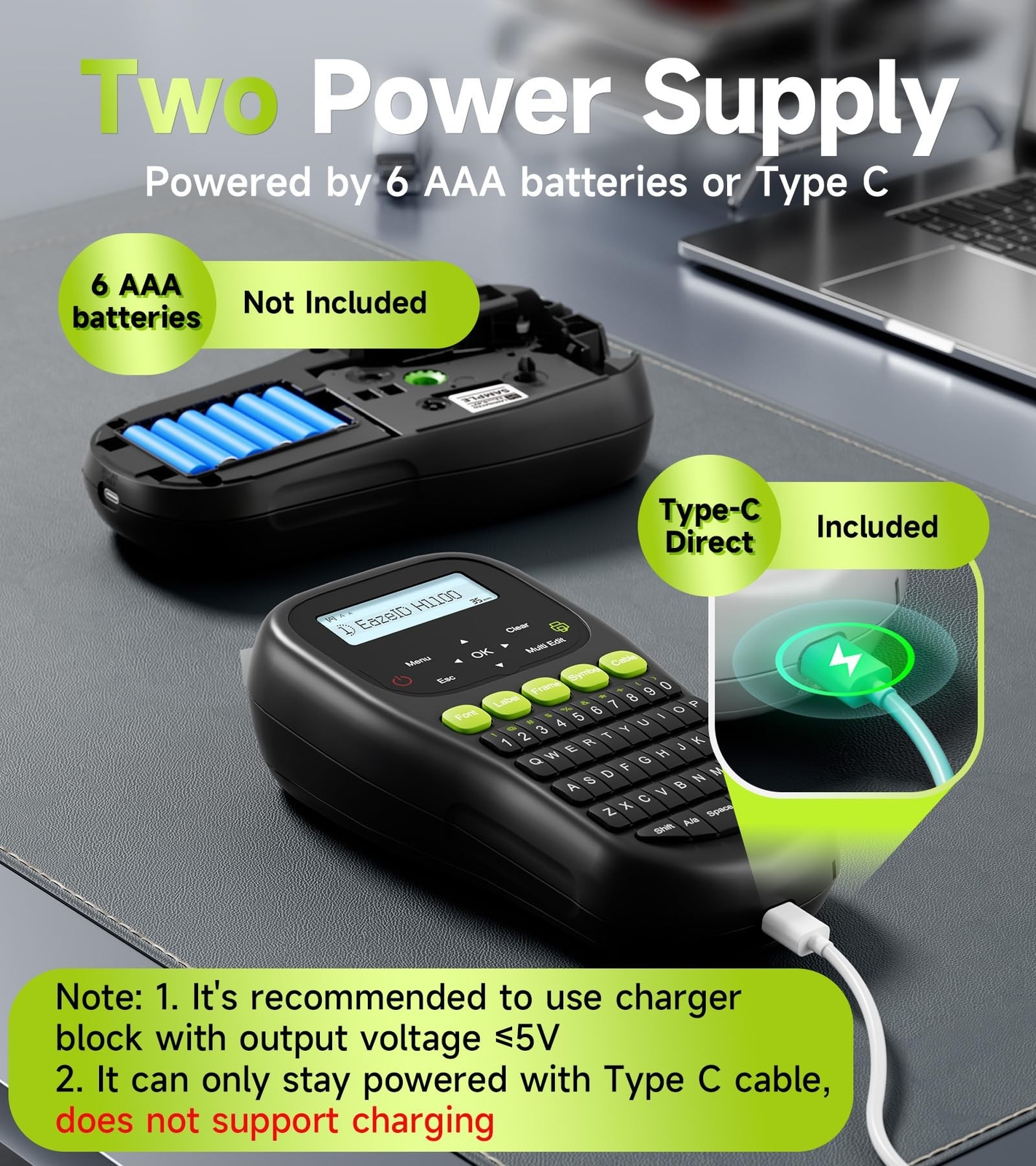 Label Maker Machine with-Tape Laminated, H1100 Black Label Maker with Keyboard, Handheld Labeler with Backlight Screen, Cabel Wire Label Maker for Industrial Home Office Use Product Details Brand: EazeID Connectivity Technology: USB Printing Technology: Thermal Special Feature: Easy Portable Monochrome Label Maker, Handheld Label Maker with Machine Laminated Tape, Cabel Wire Label Maker for Industrial, Qwerty Keyboard Labeler, One-Touch Keys Label Maker See more Color: Black Model Name: h1100 cabel label maker Printer Output: Monochrome Maximum Print Speed (Color): 150 Max Printspeed Monochrome: 150 Product Dimensions: 8"D x 4"W x 2"H Printer Media Size Maximum: 12mm Included Components: User Manual * 1, EazeID H1100 Label Maker (Black) * 1, Usb C cable * 1, Replacement Cutter Holder * 1, 12mm 0.47 Laminated Label Tape (Sample Tape 4M*12mm) * 1 Print media: Labels Sheet Size: 12mm Dual-sided printing: No Duplex: Simplex Hardware Interface: USB Ink Color: Black Additional Printer functions: Print Only Model Series: EazeID H-Series Specific Uses For Product: Office, Industrial, Home Product Dimensions: 8 x 4 x 2 inches Item Weight: 1.1 pounds Item model number: h1100 label maker Date First Available: August 27, 2024 Manufacturer: EazeID Country of Origin: China Portable and Lightweight for Easy Organization : The EazeID H1100 portable label maker machine with tape is incredibly lightweight (only 400g), allowing you to organize effortlessly wherever you go. The compact label maker with keyboard have a ergonomic design ensures comfort during extended use, making it ideal for home improvement, office organization, or even outdoor activities. Familiar QWERTY Keyboard for Intuitive Typing : The EazeID H1100 label maker comes with a QWERTY-style keyboard, making it easy to type text for any organizational task. The familiar layout reduces learning curves and enhances productivity Built-in Memory for Fast Reprinting : The EazeID H1100 wire label maker machine has a built-in memory that can store up to 9 labels for quick reprints. One-touch keys allow you to easily access different fonts, sizes, styles, and frames, simplifying the labeling process. This feature saves time and effort, especially when you need to print multiple copies of the same label Multiple Fonts and Symbols for Versatile Labeling : The EazeID H1100 cable label maker offers 21 fonts, 100+ frames, and over 800+ symbols, 22 language, along with an easy-view graphical display for precise preview before printing. This versatility makes it suitable for a wide range of applications, from home improvement to office management. Specialized symbols and frames enhance the visual appeal and functionality of your labels Environmentally Conscious Labeling : The EazeID H1100 industrial label maker is not only a powerful tool for organization but also an environmentally friendly choice. The label maker uses EazeID Genuine BZ tapes, which are designed to be durable and long-lasting, reducing the need for frequent replacements. These tapes come in acid-free options, ensuring they do not harm your belongings or the environment over time. Additionally, the H1100 model is powered by 6 AAA batteries or an optional Type C cable, allowing you to choose the most sustainable power source based on your usage patterns