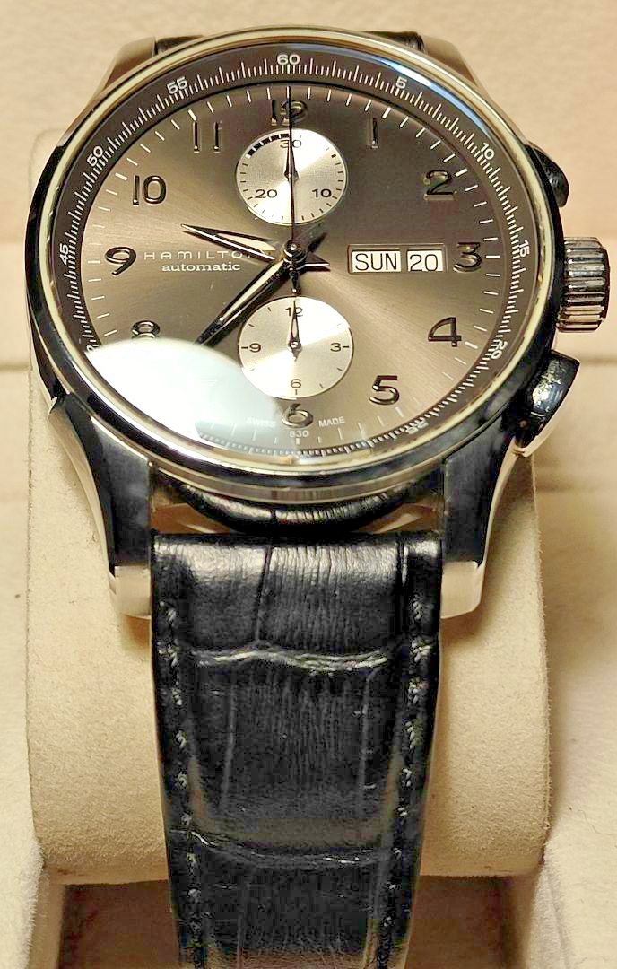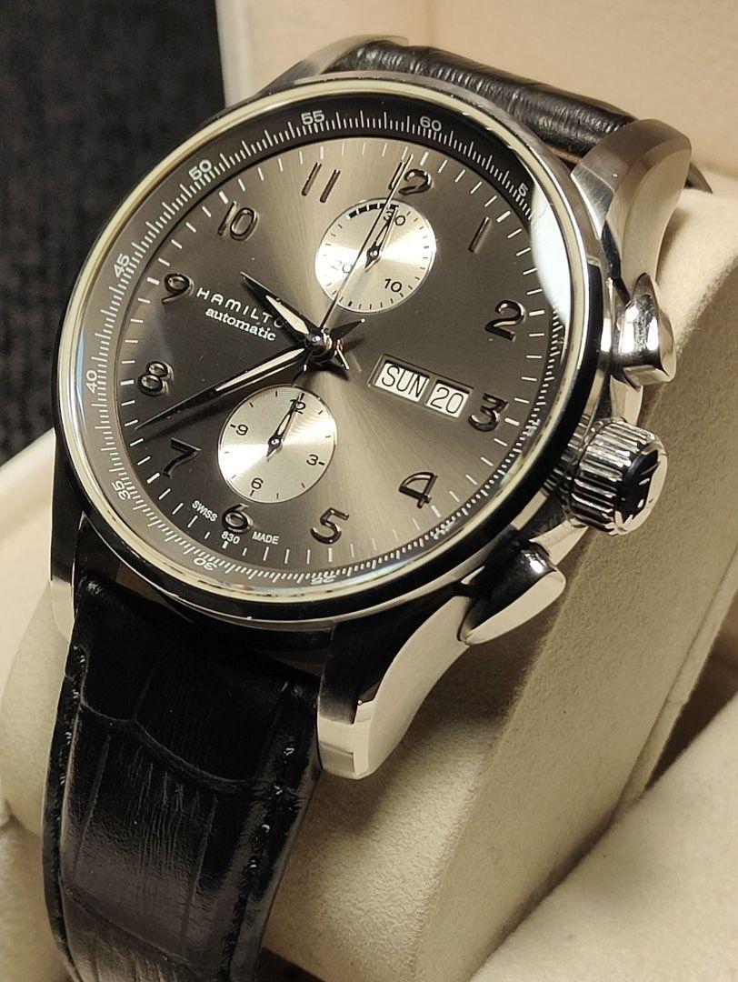 * Description All my products are 100% Authentic. Please feel free to contact us if you have any question. 🎩🎼 [HAMILTON Jazzmaster Maestro Automatic Chronograph Khaki] ⌚️🌿 A classic and modern fusion, a masterpiece for adults! 🌿⌚️ 🕰️💎 Equipped with a genuine Swiss automatic movement! 🔧 High precision and reliability with a Swiss-made automatic movement 🔋 Practicality is also outstanding with hand-winding and hack functions! 🎨🌿 【A sophisticated khaki dial exudes elegance】 🌄 A perfect blend of military style and elegance with a subtle khaki color 🎼 The combination of silver indices and chronograph hands enhances readability and luxury 🧭⏱️ 【3-counter chronograph function】 for enhanced functionality! 🔘 Features a 12-hour accumulator, 30-minute accumulator, and small seconds hand 📅 Convenient date display makes it perfect for both daily use and business ✨ 🛡️💼 【Case & strap details】 📏 Case size: Approximately 42–45mm for a bold presence 🪶 Stainless steel case and premium leather strap for a luxurious wearing experience 🌟 Sapphire crystal glass for scratch resistance and long-lasting beauty! 🎁👔 【Versatile for both formal and casual occasions!】 🕴️ Pair with a suit for a sophisticated, polished look 🎽 Pair with casual attire for an intelligent, effortlessly stylish vibe! 🎵⌚️ A maestro that plays the rhythm of time, just for you ⌚️🎵 🌟 Design, functionality, and reliability—all top-notch! 🌟 🛍️ Perfect for watch enthusiasts and those looking for their first luxury watch! A timeless piece you'll cherish for a lifetime—a surefire choice! * Shipping We ship using FedEx, DHL and Japan Post. * Payment We usually ship within 5~10 business days of receiving cleared payment. * International Buyers - Please Note: Import duties, taxes and charges are not included in the item price or shipping charges.These charges are the buyers responsibility.Please check with your countrys customs office to determine what these additional costs will be prior to bidding/buying. These charges are normally collected by the delivering freight (shipping) company or when you pick the item up do not confuse them for additional shipping charges. I do not mark merchandise values below value or mark items as "gifts" - US and International government regulations prohibit such behavior.