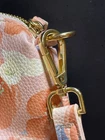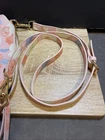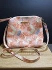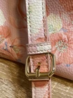 This Steve Madden beautiful floral crossbody bag features a beautiful pink and blue floral design with a pebbled finish. The bag is made of faux leather and has a full length crossbody strap that can be adjusted to 27.5 inches. It has a top zip with wristlet attached, lobster clasps on the strap and buckle on strap for length adjustment. The bag is large with a width of 11.5 inches, a height of 9.5 inches, and a depth of 3.5 inches. It is perfect for any occasion, whether it be for travel, weddings, parties, or just everyday use. The bag comes with golden STEVE MADDEN logo on the front and accessories such as detachable strap, and wristlet. The interior is lined with black fabric and has a white Steve Madden logo. This designer purse is a must-have for any fashion-forward woman. This bag is pre-loved, but no apparent damage or wear. Thank you for visiting my store! I ship on Mondays and Thursdays. Orders are shipped with USPS ground advantage with tracking. Before shipping, the seller sends the buyer photos of the item, how it is packaged and the shipping label to ensure correct address. Returns are accepted, the buyer pays return shipping. Returns must be within 15 days of delivery.