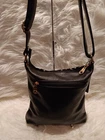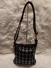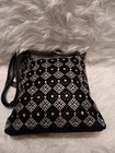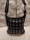 This stunning crossbody features gorgeous stones that are guaranteed to turn heads. Has back zipper pocket 22 inch adjustable single strap made of faux leather construction fully lined interior two interior slip pockets and one zipper pocket and a center zipper divider compartment top zipper closure with gold hardware. Approximate size 9.5Lx9.5Hx1.5W