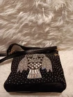 An effortlessly cool silhouette, this fashion hobo is made in a soft faux leather and features a rhinestone crafted owl design. Has back zipper pocket has two side tassels and chain accent. 9 inch detachable strap and an adjustable and detachable 22 inch strap made of faux leather construction fully lined interior two interior slip pockets and one zipper pocket and a center zipper divider compartment top zipper closure with gold hardware. 10Lx10Hx3W