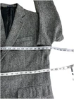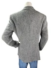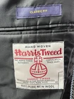 The HARRIS TWEED Blazer is a stylish and versatile sport coat for men, crafted from hand-woven wool tweed in a classic herringbone pattern. This blazer, in size 44R, is perfect for casual or business occasions with its gray color and two-button single-breasted front. The American-inspired design and high-quality fabric make it a sophisticated and timeless addition to any gentleman's wardrobe.