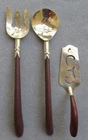 We are pleased to offer this beautiful, sterling silver, wooden-handled salad serving set. The serving fork and spoon each measure approximately 12 inches long and are in excellent condition. They are marked “Sterling Hecho en Mexico DF” and “HCV Plata 925.” Buyer to pay USPS shipping costs. If you have questions concerning shipping costs, payment options, item description, etc. please e-mail before purchasing. Thanks for looking!