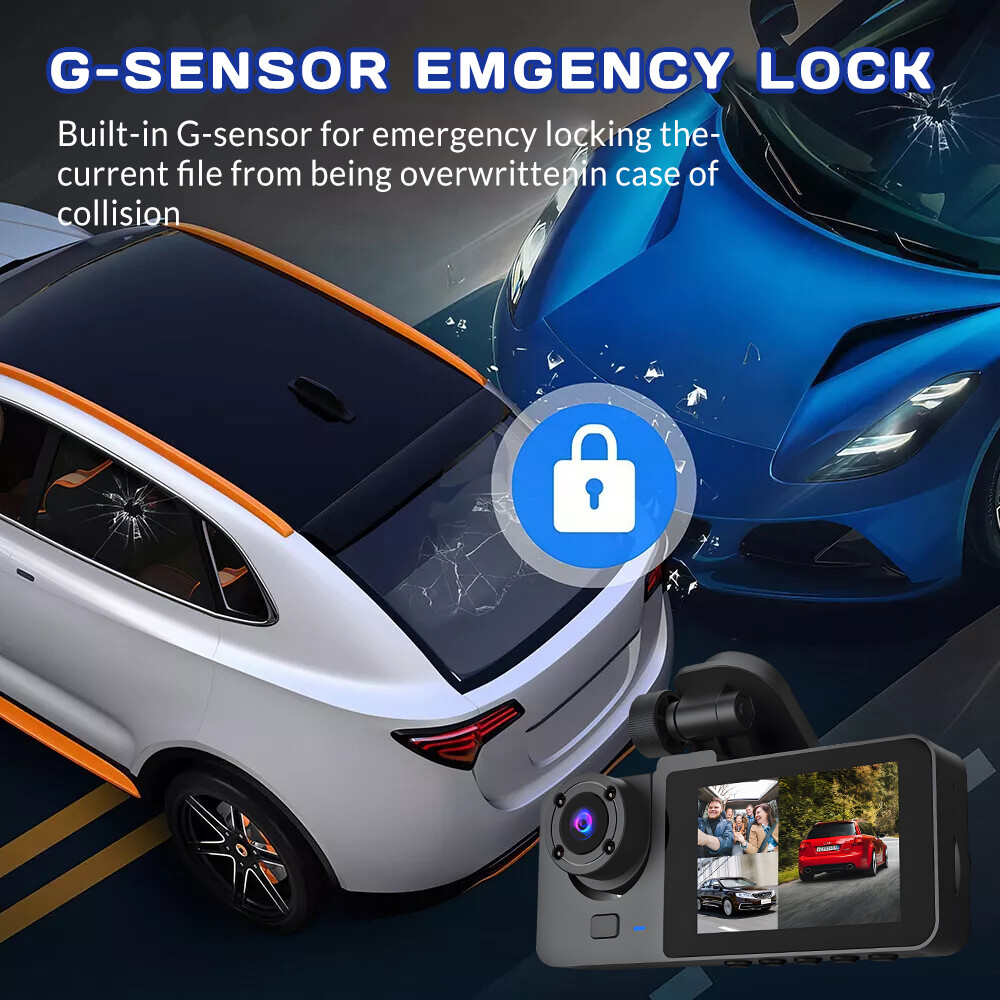 A set includes: Dash Camera * 1 car cigarette lighter * 1 black and red line * 1 rear camera * 1 bracket * 1 adhesive * 1 2 screws * 1 Chinese and English manual * 1 32G card Patent situation: None (If using TM, try not to play 4K as it may cause complaints. Pay attention to the pictures, as TM's previous infringement was caused by the pictures) Related certifications: CE FCC Scheme scheme: Lingtong 6248 Pixel pixels: front 200W/middle 50W/back 50W Lens lens: Front GC1084/Interior 0308/Rear OV09 Resolution: First 1280 * 720P/Middle 640 * 480P/Last 640 * 480P/30 frames G-sensor : support Display screen: 2.0-inch IPS screen View angle: 170 degrees/110 degrees/110 degrees Cycle recording: Supports loop recording Temp Park Motion Record Parking Guard/Parking Monitoring: Not supported Motion Detection Function: Supports Date stamp Date time watermark: Supports Memory card: Maximum 32GB(Including) Power interface: USB2.0 Battery: 150mAh Output: USB2.0 Current frequency: 50/60Hz Language: Russian, Japanese, French, Italian, German, , English, Chinese (simplified),Chinese (Traditional), Korean ,Spanish, Portuguese. Operation Temp Operating Temperature:- 20°-+70°