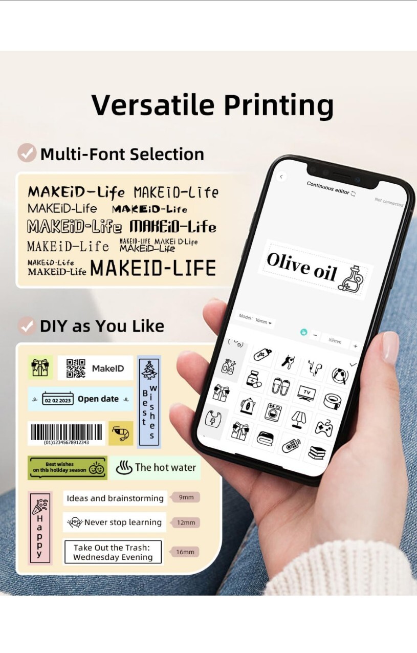 Makeid Label Maker Machine with Tape - Compatible with 9/12/16mm Waterproof Tape, Portable & Rechargeable Label Makers with Built-in Cutter Wireless Label Printer Compatible with Android & iOS Devices Any questions feel free to ask Reasonable offers considered Thanks and have a nice day