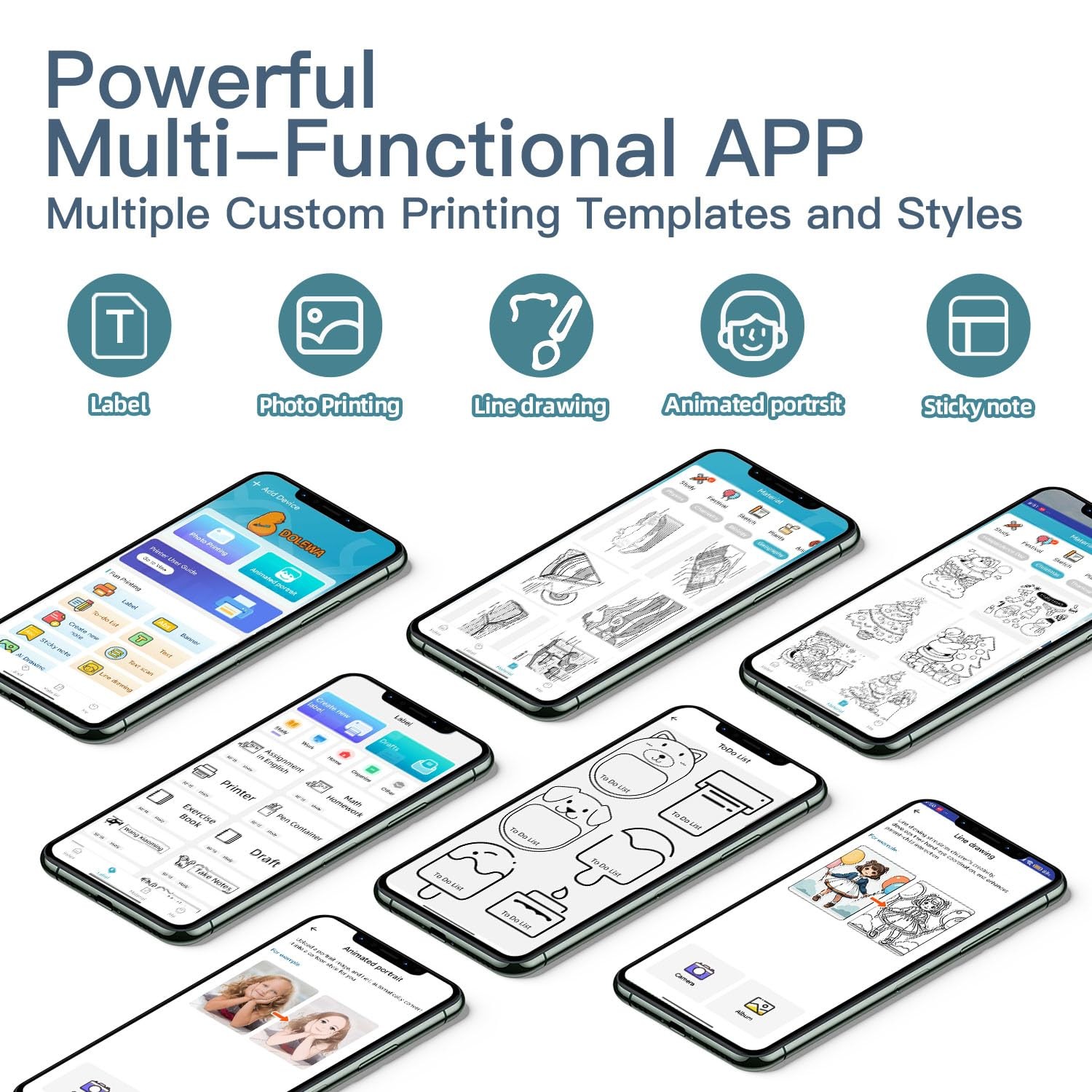 A label printer is an essential tool for businesses, offices, and households alike. Whether you need to organize files, label storage containers, or create custom stickers and tags, a reliable label printer can streamline your tasks. Imagine effortlessly printing crisp, legible labels with just a few clicks, saving you time and ensuring professional-looking results. With a wide range of label sizes and materials available, you can tackle any labeling project with ease. Bid farewell to handwritten labels and embrace the convenience of a label printer that simplifies your organizational needs. ADJUSTABLE LABEL PRINTER-Multiple sizes in one, the printer can supports varies type(Rectangular,Round,Transparent,Tattoo paper) roll papers, and can also support multiple thermal paper sizes(12mm/0.47In-57mm/2.24In), can meet most of your needs 7 ROLLS DIFFERENT PAPER:Our D5 mini printer sticker maker includes 7 rolls of paper, making it more convenient to use than regular thermal paper. Come with (1 roll 40mm round +1 roll colorful 50*30mm) composite label printing paper, (4 roll white+1 roll green) adhesive stickers eliminate the need for tape or glue, providing a wonderful printing experience EXCLUSIVE BRAND APP: The bluetooth inkless printer with a powerful App, supports a wide variety of styles, fonts, sizes, and patterns, allowing you to create unique, creative labels tailored to your needs. Easily edit, adjust, and personalize your prints to your liking, adding more fun to your work and life. The fonts, languages, video tutorials of the APP will be updated regularly every month USER-FRIENDLY: The mini pocket printer is compatible with IOS & Android phones /tablets via bluetooth connection. Fllow the steps: ①Long press for 3 seconds to turn on the portable thermal printer. ②Scan the QR code in the user manual to download the "" APP. ③Turn on bluetooth of your phone/tablet. ④Install the paper roll size as you need. ⑤ Connected the impresora portátil with the APP via bluetooth.⑥Start your printing VARIOUS USES OF THE STICKER MAKER: Enjoy labels anywhere with mini thermal printer like price, date, ingredients, small businesses, clothing, retail etc. label address, barcode, transportation, and product labeling. Ideal for halloween, christmas, thanksgiving, father's day, mother's day, various uses bringing great convenience to our work and life