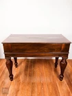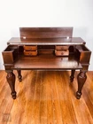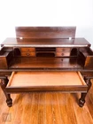 Highly collectible elegant H.E.Shaw Grand Spinet desk in beautiful original condition. This desk has been very well cared for, and shows only minor signs of use consistent with age. Features four small utility drawers, one very large very deep – solid mahogany main drawer, a pull out writing surface, and several handy cubbies for letters or phone chargers etc. All articulating hardware (hinges) are finished in nickel, with locking lid (sorry no key). The design itself stands testament to functionality. The ample work surface, further extended by the pull-out writing/laptop platform, provides a comfortable and spacious environment for research and writing. The four well-proportioned drawers offer dedicated storage for writing implements and research materials, while the deep main drawer accommodates larger items like files, manuscripts, or rare books. Nickel-plated hardware adds a touch of understated elegance, complementing the warm mahogany tones. The robust baluster legs, a hallmark of the period, not only provide exceptional stability but also contribute to the desk's overall grandeur. Has several additional side and front letter/stuff cubbies. This one is rare, valuable and in exceptional condition. Dimensions: W: 46" D: 21" H: 35" Writing Surface: 34.5" x 19" Writing Height: 28.5" Legroom Height: 24" ***Guaranteed authentic. This unique item is a FINAL SALE - please ask questions or call directly prior to purchasing, we'd be glad to answer any questions you have. Additional photos/video available - Thank you : ). Shipping will be insured to full value/purchase price. Returns are accepted on a case by case basis. Payment methods PayPal, VISA, MC, Discover, Amex Maison Robert Minneapolis, MN 55401 Shipping & Handling Buyer pays shipping. Contact us to request alternative shipping quotes on Freight Items. Small/Medium items are sent via FedEx & UPS Ground. All items are professionally packed/crated/boxed. Sales tax 7.5% sales tax applicable for MN buyers and free customer pickup in Minneapolis, MN. Customer Service & Return Policy We believe in 100% honesty and transparency. We encourage you to reach out to us with any concerns or questions prior to placing a bid, or buying an item. 15% restocking fee/buyer pays return shipping.