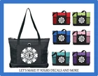 HEARTS CIRCLE MONOGRAM ZIPPERED GEMLINE TOTE MADE WITH QUALITY MATERIAL. VERY DURABLE. THESE ARE GREAT TO USE FOR OVERNIGHT BAGS, PURSES, GOING TO THE GYM, SCHOOL, TRIPS TO THE LAKE OR BEACH, CAMPING, USE AS A DIAPER BAG AND MORE THE DESIGN IS HEAT PRESSED VINYL AND WILL BE DONE IN WHITE BAG SPECS: 600-denier polyester 29½" Black webbing shoulder straps Zippered main compartment Front pocket with pen loop Two side mesh pockets Back panel is Black 20"W x 14"H x 4"D If you have a design request feel free to send us a message. We will work to see what we can do for you. Thanks! We try to ship out our items as quick as possible, but with made to order items it could take up to 5 days for the item to be completed and shipped. We thank you for your patience. DESIGN MAY BE SLIGHTLY ENLARGED TO SHOW DETAIL. DESIGNS WILL NOT EXCEED 6.5 INCHES EITHER IN WIDTH OR LENGTH. Be sure to fully examine all pictures closely and read auction completely prior to placing a bid. If you have any questions please be sure to contact me and I will do my best to answers them. I do combine shipping! Please note that our post office is closed on Sat & Sun so we can only ship Mon-Fri. Paypal is the only form of payment we accept at this time. If ever there is a problem please contact us prior to leaving bad feedback. We strive for a 5 star rating. Thank You :-) We sell a large variety of items. Be sure to stop in our store to see the other wonderful items we have to offer. From new to used to custom made. We do combine shipping!
