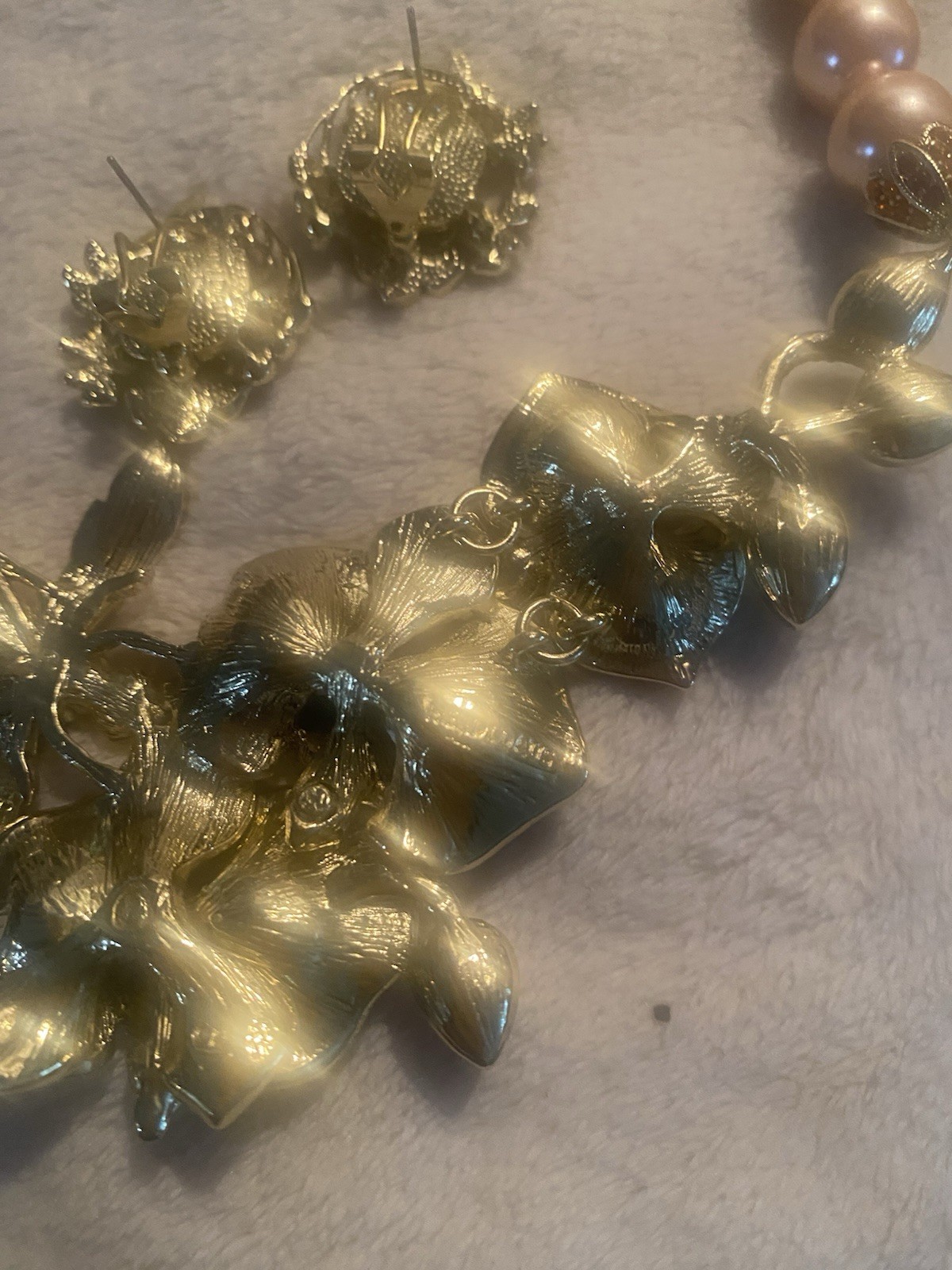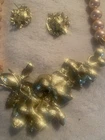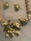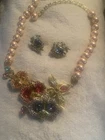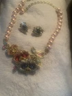 18βl/2 long , 3β extender , 2β wide, 2.5β drop , pink glass pearls, exquisite color crystals, fern green, tanzanite color, rose, padparasha orange, amethyst color, sun orange,aqua color, topaz colors fuschia color, amethyst color. Articulated so it lays where you position it . A Heidi DAUS masterpiece with coordinating stud omega 1 1/4β lightweight perfect earrings. Earrings colors are fern green, tanzanite, aqua rose colored crystals. Wearable art turn heads wherever you go! $350.00. Value