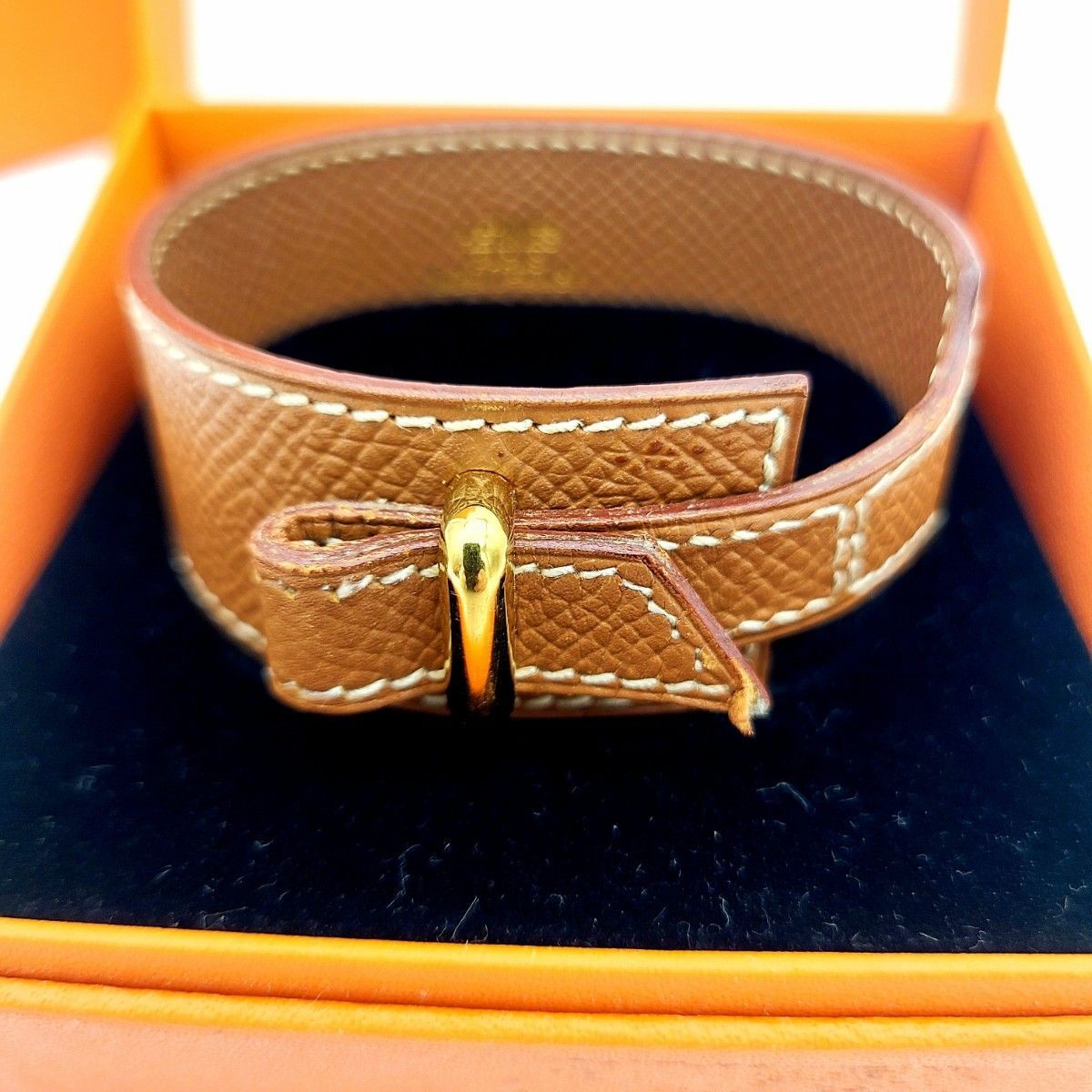HERMES Genuine Leather Bracelet Bangle with Original Box Luxury Accessory