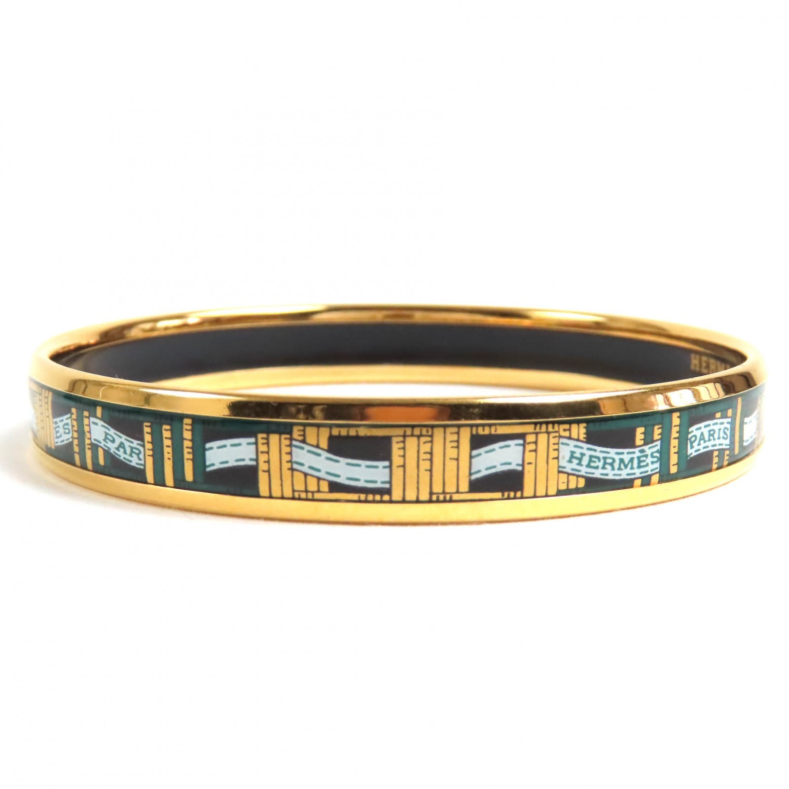Absolutely stunning Hermès bangle! The gold, green, and black enamel with the iconic ribbon motif is elegant and timeless. Perfect size at 19cm inner circumference, lightweight yet feels luxurious. Unused condition—looks brand new! A must-have for any Hermès lover.