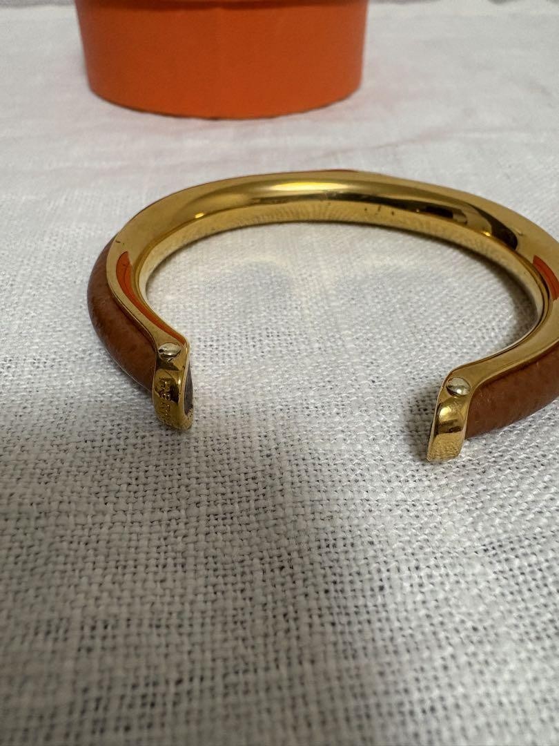 HERMES Bangle Bracelet Gold Plated Lizard Leather Gold Brown Woman's Accessories Description w/box The box is damaged due to aging. Size:Diameter 1.7in Purchased at Hermes in Paris over 10 years ago. It was stored and hardly used. There is some dullness like dirt. About us I'm Japanese Seller. Please feel free to contact us anytime if there is something you want. We hope you enjoy shopping!! Condition Note This item is from a private collection. Please note that it has been previously owned, so kindly consider it as such when making your purchase. Shipping Shipping from Japan with Tracking Number & Insurance. We usually ship out your order within 4-10 working days after receiving your payment. Payment Please pay within 5 days after auction is finished. International Buyers - Please Note * Import duties, taxes and charges are not included in the item price or shipping charges. These charges are the buyer's responsibility. * Please check with your country's customs office to determine what these additional costs will be prior to bidding/buying. * These charges are normally collected by the delivering freight (shipping) company or when you pick the item up - do not confuse them for additional shipping charges. * We do not mark items as "GIFTS" Returns Returns are accepted ONLY if the item was not the item described.