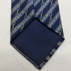 HERMES Necktie Tie Men's Navy All over Striped pattern 100% Silk Made in France