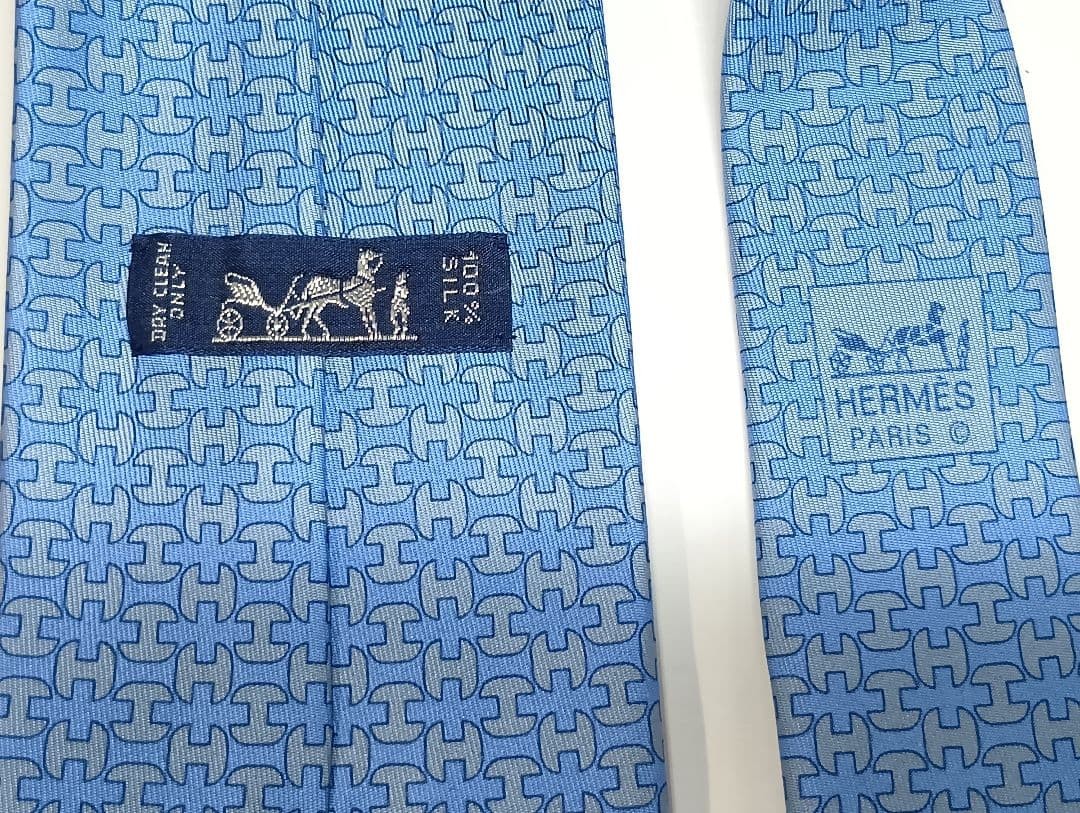 HERMES Necktie Tie All over chain pattern Made in France Used Red 100% Silk