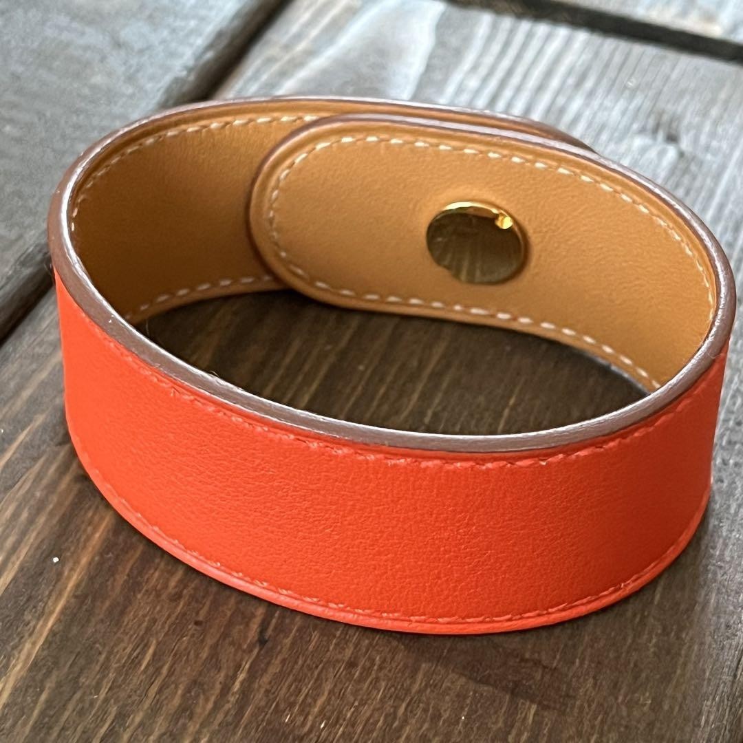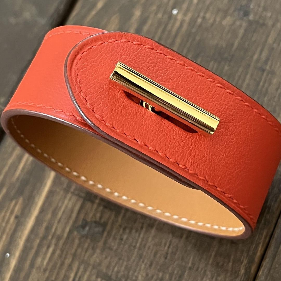 $ 322.6HERMES Collier de Chien Medor Leather Bangle Bracelet Coral Red Gold HW
