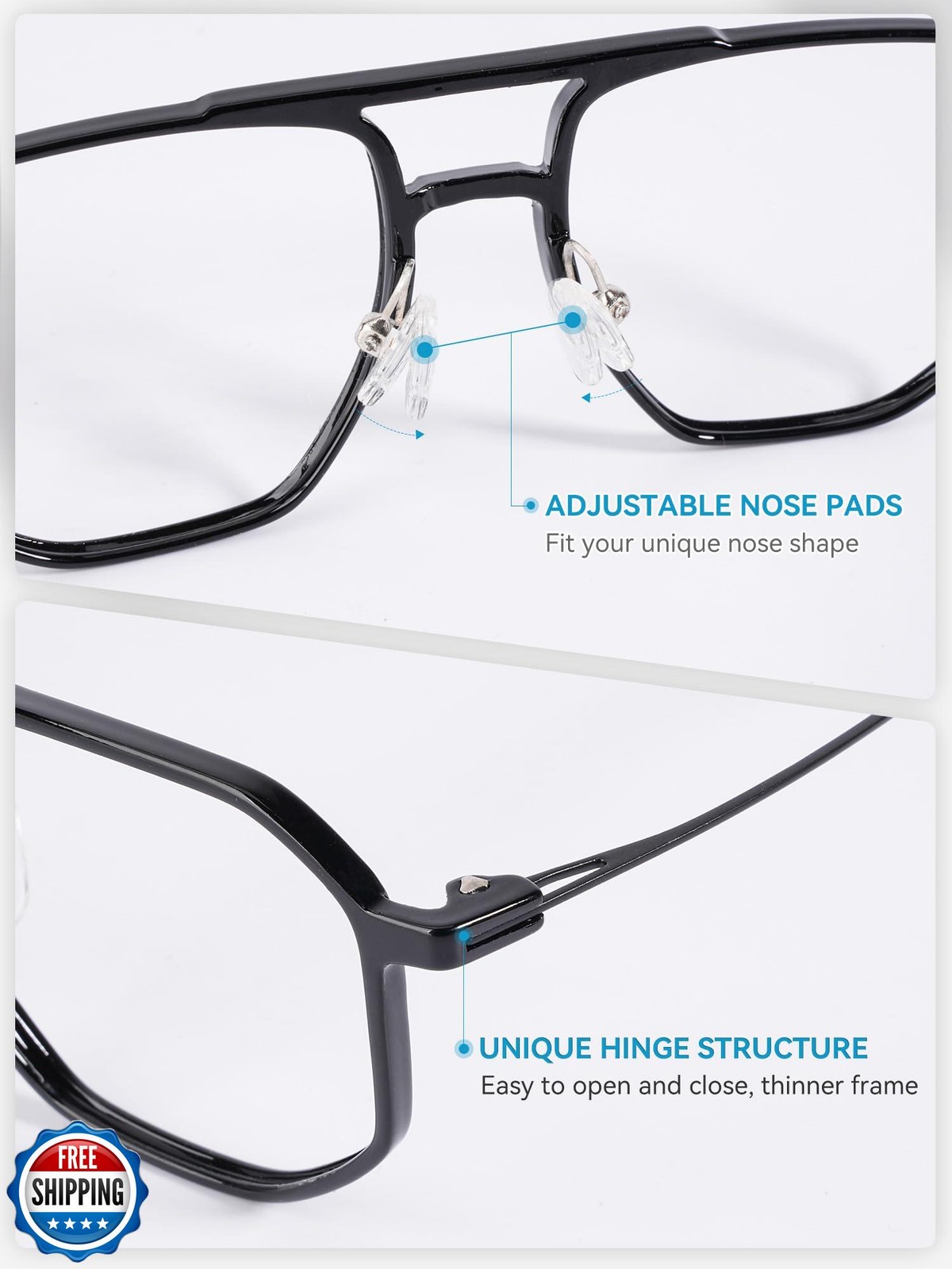 HGIOOIGH Blue Light Glasses Unisex,Thin Light Tr90 Metal Computer Eye Glasses Frame,A-Black Features Hypoallergenic and Durable Materials – The TR90 and stainless steel materials we use are both corrosion-resistant and allergy-friendly. They can handle impacts and pressure without breaking, which means they won’t easily lose shape and will last a long time. Thin,light, Almost No Feeling – Thanks to the ultra-light materials and high-definition blue light blocking lenses, you might even forget you're wearing them. Made to Fit You – With adjustable nose pads and flexible materials, these are designed to fit comfortably on different nose and head shapes. HD aspherical PC lenses – Compared with ordinary plastic lens, clearer vision, higher hardness, impact resistance. SIZE: 51-18-146,Lens Height: 44mm/2.01in,Frame Width:137mm/5.39in,Weight:15.1g Shipping Free & Fast Shipping: We offer free shipping to most of the USA with a normal delivery time of 3-7 days. However, due to the current situation, additional delivery time (up to 3 weeks) may be required for some items. Alternative Carriers: We may use alternative carriers (e.g., USPS, FedEx, UPS) to ensure your package arrives safely and on time. Due to the use of multiple carriers, we are unable to provide a tracking number automatically. Handling Time: Orders are processed and shipped within 1-2 business days of receiving cleared payment. Shipping Restrictions: Shipping to Alaska, Hawaii, Puerto Rico, Guam, and other US territories may incur shipping charges or delivery restrictions. Please contact us before ordering, or your order can be refunded/cancelled. State Restrictions: Certain items may not be shipped to California due to state regulations. Contact for Tracking Updates: If you require tracking updates or have any concerns about the delivery of your order, please feel free to contact us, and we will be happy to assist you. Return Policy 30-Day Hassle-Free Returns: If you are not completely satisfied with your purchase, you can return the item for free within 30 days of receiving it for a full refund or exchange. Easy Return Process: Contact us, and we will provide you with a prepaid return shipping label and detailed instructions. No Restocking Fee: There are no restocking fees for returns. However, the buyer is responsible for return shipping costs if the return is not due to a seller"s error. Refund Processing: Refunds will be processed within 1 business day of receiving the returned item in its original condition. Feedback Your feedback is extremely important to us. We strive to provide the best products and customer service possible. If you are satisfied with your purchase, please take a moment to leave us a positive review. If you have any concerns or issues with your order, please contact us before leaving negative feedback. We are committed to resolving any problems and ensuring your satisfaction. Contact Us If you have any questions or concerns, please feel free to reach out to our customer support team. You can contact us through the eBay messaging system. We are available Monday to Friday, 9:00 am to 5:00 pm EST, and we will do our best to respond to your inquiry within 24 hours. Thank you for supporting our small family business!