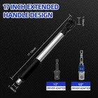 HHZSUMI 1/2" Offset Extension Wrench Impact,3-in-1 Black Product Details 【Master Tight Spaces with Offset Extension Wrench】Engineered for hard-to-reach bolts in cramped automotive, plumbing, or furniture assembly jobs. This offset extension wrench impact with 90 degree impact extension geometry slips effortlessly into narrow gaps where standard tools fail, maintaining full torque control without compromising leverage 【 3-in-1 Electric & Pneumatic Compatibility】Functions as manual wrench or connects to power tools via included adapter(e.g., drills). while doubling as an impact extension ratchet for pneumatic systems. Your ultimate solution for stubborn bolts in confined areas 【 Instant Forward/Reverse Impact Mechanism】One-click directional control switches between tightening/loosening without repositioning. The textured anti-slip surface ensures secure grip during impact extension wrench operations, even with oily/wet hands 【 Pro-Grade Durability: Industrial-Strength Construction】Built with industrial-grade tungsten steel rotary shafts that withstand 885.7 lb-in+ torque without bending. High-quality chrome vanadium steel ensures the wrench resists breaking, stripping, or wear under extreme pressure during demanding jobs 【IMPORTANT PROFESSIONAL NOTICE】Specifically engineered for confined spaces. If encountering overtightened screws: 1) Manually loosen first. 2) Attach electric/pneumatic impact wrench to complete removal. Do not forcefully use electric/pneumatic tools to remove very tight bolts as this may cause damage