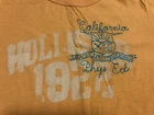 This is an AWESOME Hollister short sleeved shirt. NEW WITH TAGS!! 100% AUTHENTIC Bought Directly from store. The color yellowish orange and features a white printed background that says " HOLLISTER 1922" , Embroidered in a teal blue stitching is a crest design with the word "California" above it and below it is says, " PACIFIC HOLLISTER MERCHANT", then just below that it says, " Phys Ed. FEatures Double Raw Edge Stitched Hemline around neck, sleeves, and bottom of shirt. 100% Cotton . SUPER SOFT!!!!