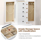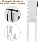 HOMGX (White, Jewelry Cabinet with Mirror, Armoire Box Storage Chest, Stand Organizer with 5 Drawers & 8 Necklace Hooks Product Details Color: White Brand: outdoor basic MPN: Standing Jewelry Armoires UPC: 649874569369 EAN: 0649874569369 Brand: outdoor basic Product Dimensions: 13"D x 9"W x 34"H Color: White Mounting Type: Freestanding Special Feature: Durable,Jewelry Organizer Brand: outdoor basic Product Dimensions: 13"D x 9"W x 34"H Color: White Mounting Type: Freestanding Special Feature: Durable,Jewelry Organizer Model Name: HOMGX Standing Jewelry Armoires, Jewelry Cabinet with Mirror, Armoire Box Storage Chest, Necklace Stand Organizer with 5 Drawers & 8 Necklace Hooks (White) Item Weight: 5 Kilograms Size: 13"D x 9"W x 34"H (5 Drawers) Number of Pieces: 1 Target Audience: Women UPC: 649874569369 Manufacturer: HOMGX Global Trade Identification Number: 69 Item Weight: 11 pounds Country of Origin: USA Item model number: Standing Jewelry Armoires Finish types: Textured Batteries required: No Included Components: 1 x Jewelry Cabinet Well-Built with Delicate CraftsmanshipOur jewellery cabinets are beautiful and durable in addition to the spacious storage space. This cabinet has solid wood feet and a large base under the cabinet to ensure stability and durability. Wooden textured surface, suitable for a variety of interior styles. 4 Drawers and 2 Side Swing Doors The large space jewellery cabinet is divided into four drawers. The first drawer has a space inside to accommodate all large and small accessories. Two side-opening doors not only save space, but are also used to place long necklaces. 8 heavy duty hooks in vintage style. Ordered Storage and OrganizersThis full-featured jewelry organizer allows you to place your items neatly and orderly. This jewellery cabinet has a top-level finisher that allows you to place everything in order. The compartments can be used for necklaces, earrings, rings and other small accessories. A soft inner lining protects your jewelry from scratches. Unique Top Cover DesignThe jewellery cabinet takes full advantage of all the space, the top cover is equipped with a vanity mirror, and a compartment for storing various small accessories. You can close the lid and use it as a regular cabinet to display the photo frame and vase. It is up to you. Easy to MaintainUnlike ordinary floor-standing jewellery cabinets, it has 4 high feet and is easy to clean. Dust does not accumulate at the bottom of the cabinet. The tall design is also relatively easy to move. Description:This is our high quality large capacity jewelry cabinet with 4 drawers, 2 side opening doors and 8 heavy duty hooks. Solid wood feet and a large base under the cabinet to ensure stability and durability. This jewelry cabinet has a top-level finisher that allows you to place everything in order. A soft lining inside the jewelry cabinet protects your jewelry from scratches. In addition, a make-up mirror can be easily flipped and used in everyday life.Features: Sturdy and premium MDF frame, solid wood legs Powerful storage capacity, 4 drawers, 4 sub compartments, 2 swing door cabinets There are 8 heavy-duty hooks in the 2 side-opening doors that can be used to place long necklaces Soft lining inside protects your jewelry from scratches Elegant and unique shape, curved legs and super-high stand design Embedded mirror under the top lid, more convenient to try on your jewelry Our jewelry cabinet can be used as a display cabinet Only top lid assembly required and it is wooden textured surface for easy cleaning Specifications: Color: White Material: MDF, Wood Mirror Material: Glass Overall Size: 13'' x 9'' x 34'' (L x W x H)Small Drawer Size: 7. 5'' x 5. 9'' x 2. 6'' (L x W x H) Large Drawer Size: 7. 5'' x 5. 9'' x 3. 5'' (L x W x H) Package Included: 1 x Jewelry Cabinet 1 x User's Manual