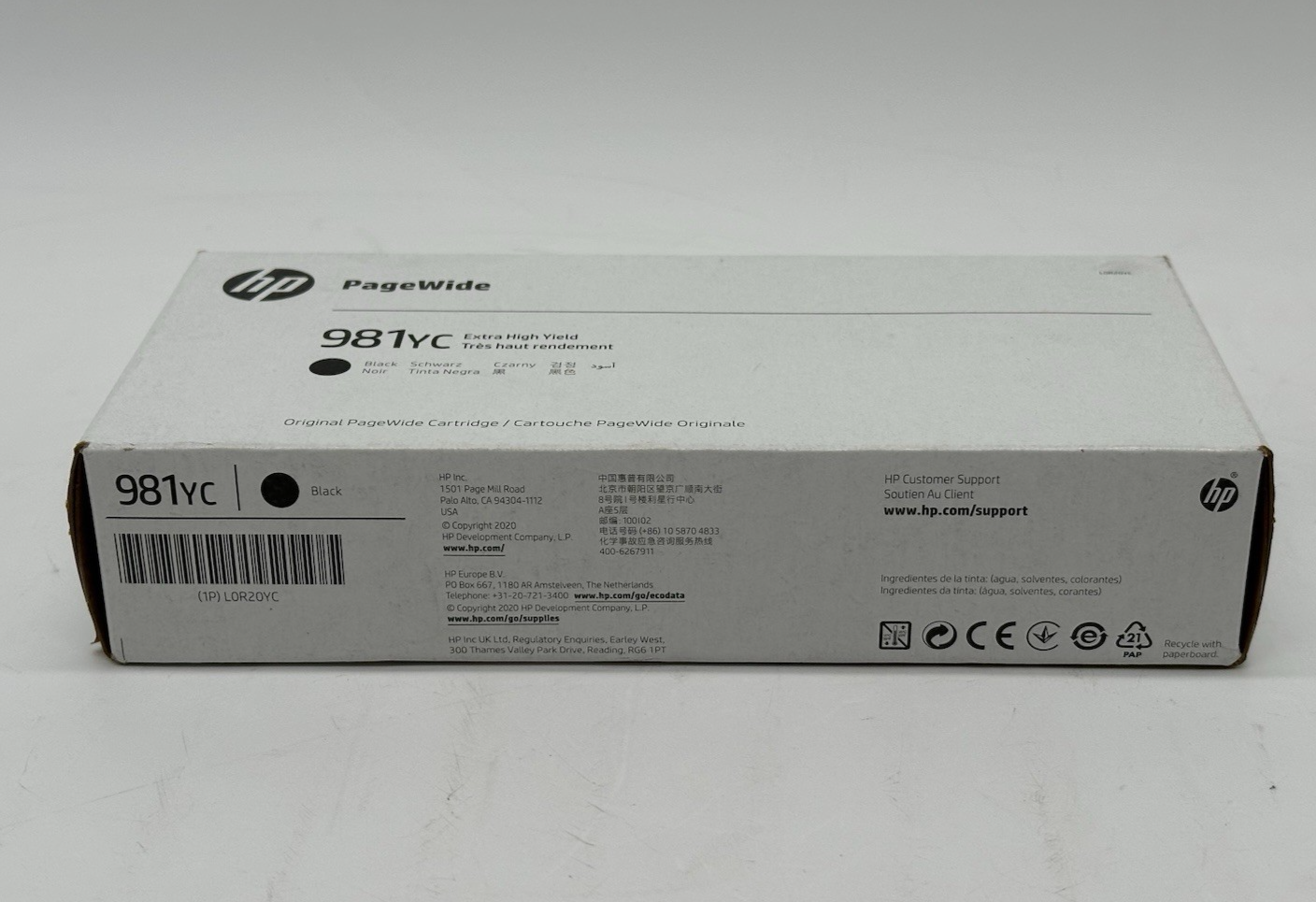 The HP L0R20YC (981YC) Black PageWide Extra High Yield Contract Ink Cartridge is a genuine/original product from HP designed for use with compatible HP printers. This high-yield black ink cartridge is specifically designed for long-lasting and professional-quality printing tasks. With its extra high yield capacity, users can expect to print a large volume of documents without the need for frequent cartridge replacements. The cartridge is compatible with specific HP printer models, as indicated by the box picture. Ideal for businesses or individuals who require consistent and reliable printing performance. Note: the ink may be expired, but it has been properly stored and should still function as expected. The box may have some marks, but it's new sealed.
