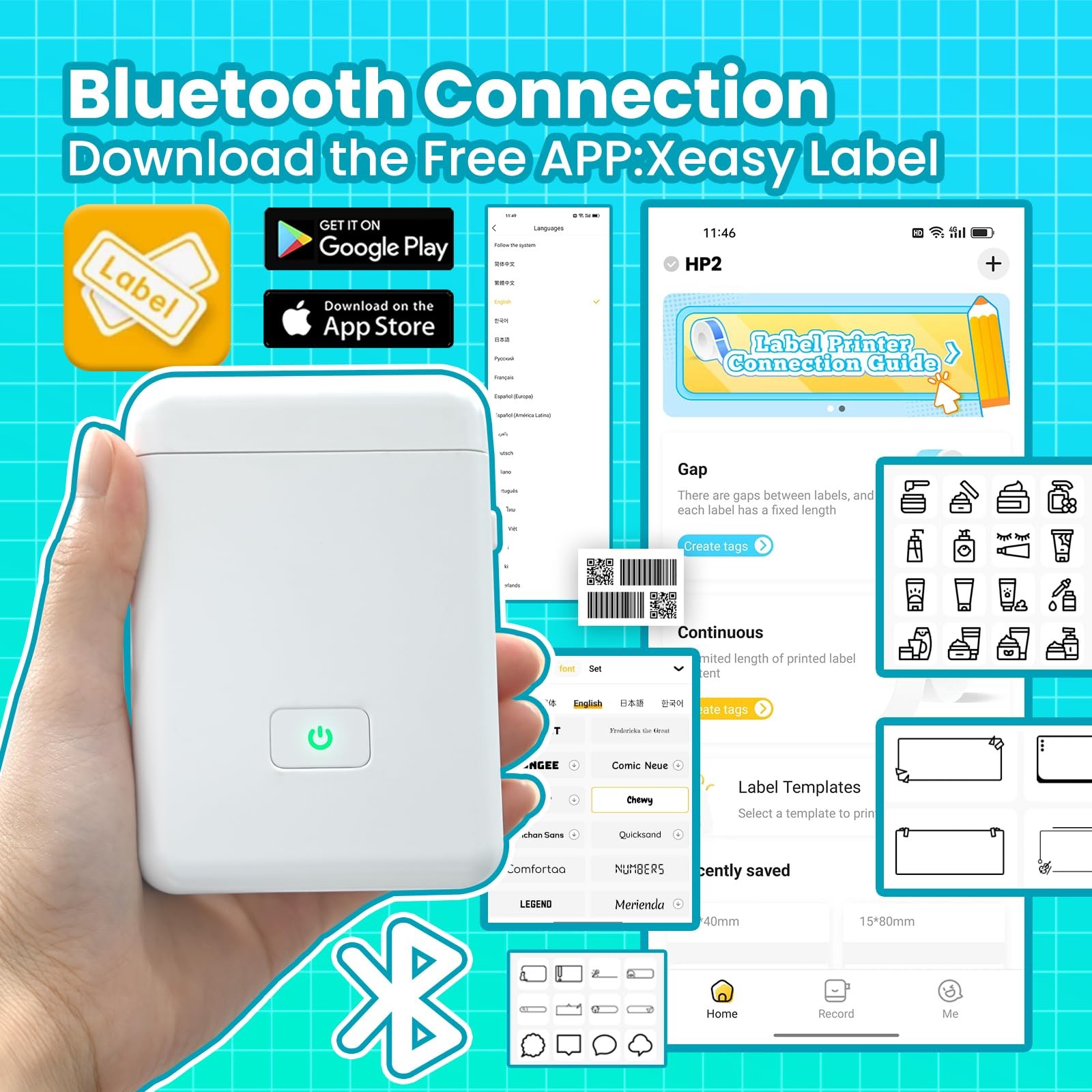 Specifications: Model: HP2 Material: ABS+PC Printing Method: Thermal Printing Accuracy: 203DPI label Width Range:20mm/s Label Tape Dimension: 50mm Media Type:Support continuous/ Gap labels Battery Type: 3.7V/2000mAh Rechargeable Cutter Mode: Manual Cutter Label Width Range:14-15mm Effective printing width:12mm Connection Method: Bluetooth *Multiple Label Templates *Suitable for organizing your kitchen/ home/office/cables/toys/medicine/cosmetics/jewelry/ classification and storage *Various Label Tapes for your creation. Support continuous labels and Gap labels with label width from 14-15mm *Easily download and connect the "XeasyLabel" APP via Phone and Pad. Compatible with iOS & Android. *Enjoy friendly inkless wrieless design for ease of use Notes: *Before printing, please chose the right size for the printing paper on the app, the size of the label tape comes with is 14x40mm *Select the right label size before editing. If select wrong label paper, the printer can’t print all the words. *Download the app "XeasyLabel" from apple store/google play Smarter and Smaller-Compared with the traditional label makers, this portable label maker is smaller and smarter. Compact and lovely design and you can take it into your pocket, and print labels and stickers anytime, anywhere. Bluetooth Connectivity & Easy to Use-This mini Bluetooth label printer prints stickers wirelessly. Just need to download the "XeasyLabel" APP, and then it is easy to create custom labels in your way. The app included more than 60 +Fonts, 12+ Languages, and 400+ Borders. And it supports iOS & Android. (NOTE: This label maker doesn't work with computers) Multiple Creative Templates & A Great Christmas Gift-This app of this stickers maker provides a variety of templates, containing texts, tables, symbols, logos, barcodes, QR codes, images, time, insert Excel, etc. Small label size from 0.5inch to 0.6inch. Easy to create various cute and useful label stickers from your phone. Labels are fixed in length, not support continuous label tape. And Package included 14x40mm white label paper. You can buy one for your friends or family as a Christmas gift, which makes Christmas interesting! Wide Application & Perfect for Thanksgiving Decorations- This label maker machines are used widely in organizing home supplies, classifying cosmetics items, price name jewelry tags, jar stickers, school and office files classification, storage, marking, etc. If you want to label some thanksgiving decorations, it is also a great choice! High-Quality Printing- Equipped with a Japan thermal print head and 203 DPI, this handheld label maker prints fast and clearly. And this label maker machine with tape print inkless, and it is rechargeable, with a 2000 MAH Battery Life, saving your time and money.