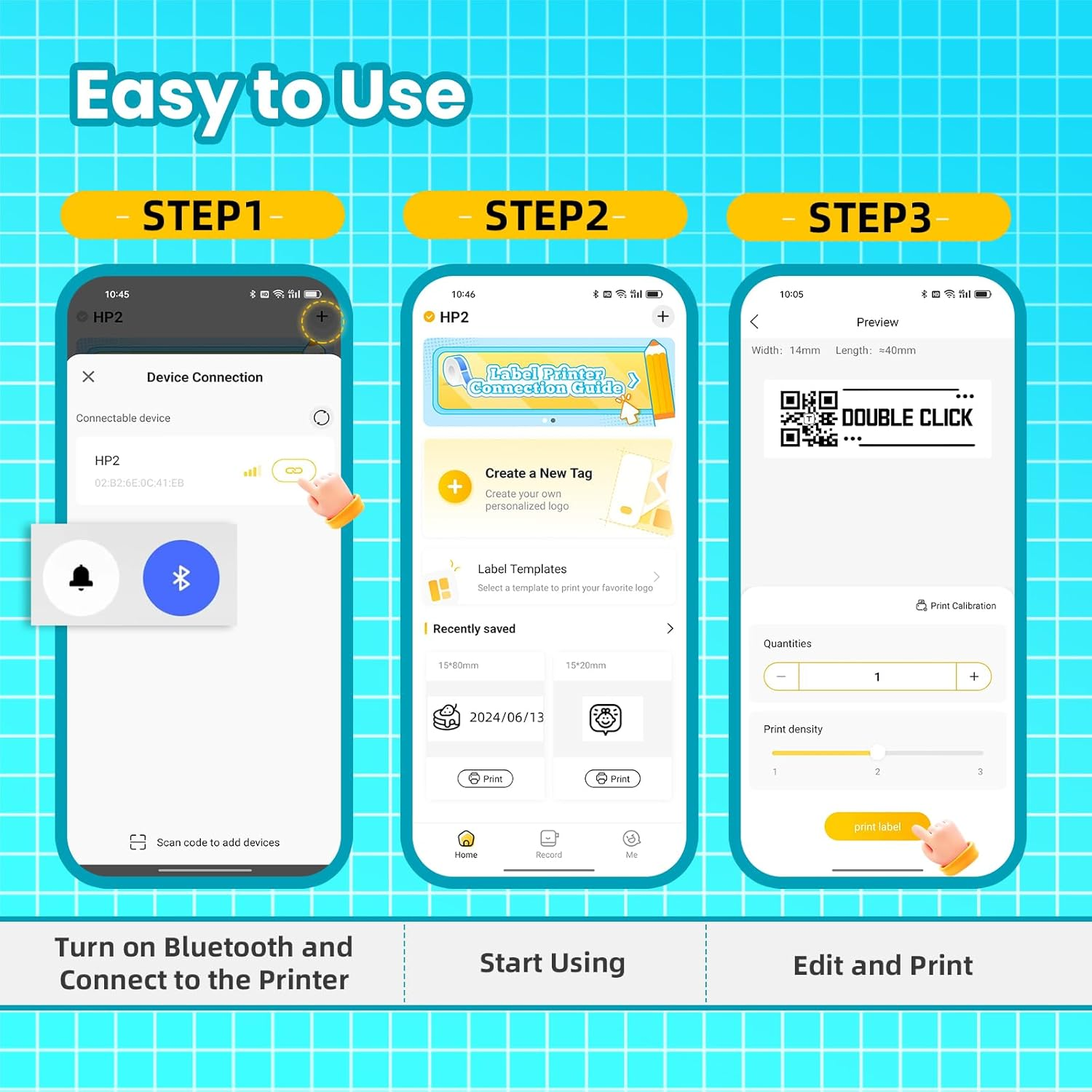 Store New Arrivals Add to Favorite View Feedback Contact Label Maker Machine with Tape, HP2 Portable Bluetooth Label Printer for Storage, Shipping, Barcode, Office, Home, Organizing Mini Sticker Label Maker with Multiple Templates (Blue) Description Item model number HP2 Max copy resolution black-white 203 dpi Control Method App Warranty Type Limited Warranty Compatible Devices Tablets Ink Color Blue Print media Labels Dual-sided printing No Controller Type iOS, Android Maximum Black and White Print Resolution 203 DPI Max Input Sheet Capacity 10 Resolution 203 x 203 DPI Manufacturer Part Number AMZ-HP2-BL-UB-US-FBA Model Name HP2BL Scanner Type Portable Hardware Interface Bluetooth Specific Uses For Product home and office organization, labeling jewelry, storage, marking, and decorations Included Components Label Tape Item Weight 0.2 Kilograms Connectivity Technology Bluetooth Special Feature Portable Printing Technology Thermal Sheet Size 4 x 6 inches Color blue Wattage 5 watts Maximum copies per run 100 Max Printspeed Monochrome 175 ppm Printer Output Monochrome Global Trade Identification Number 79496993237200 Batteries 1 Lithium Ion batteries required. Maximum Print Speed (Color) 175 ppm Product Dimensions 4.23"D x 2.99"W x 1.18"H Smarter and Smaller-Compared with the traditional label makers, this portable label maker is smaller and smarter. Compact and lovely design and you can take it into your pocket, and print labels and stickers anytime, anywhere. Bluetooth Connectivity & Easy to Use-This mini Bluetooth label printer prints stickers wirelessly. Just need to download the free app, and then it is easy to create custom labels in your way. The app included more than 60 +Fonts, 12+ Languages, and 400+ Borders. And it supports iOS & Android. (NOTE: This label maker doesn't work with computers and tablet) Multiple creative templates and a great Christmas gift - This sticker maker app provides a variety of templates, including text, table, symbol, logo, barcode, QR code, image, time, insert Excel, etc. Easily create a variety of cute and practical label stickers from your mobile phone. The label length is fixed and does not support continuous label tape. Wide Application & Perfect for Thanksgiving Decorations- This label maker machines are used widely in organizing home supplies, classifying cosmetics items, price name jewelry tags, jar stickers, school and office files classification, storage, marking, etc. If you want to label some thanksgiving decorations, it is also a great choice! High-Quality Printing- Equipped with a Japan thermal print head and 203 DPI, this handheld label maker prints fast and clearly. And this label maker machine with tape print inkless, and it is rechargeable, with a 2000 MAH Battery Life, saving your time and money. Product Description Pre-Cut Label Tape Work with Vretti HP2 Labal Maker Machine ABOUT US We offer the best prices around on high quality products. Our E-store includes media such as books, movies, music and games while offering electronics, toys, sporting apparel, clothing, tools, general home, garden items and more. SHIPPING We are always working hard to ensure your package arrives as soon as possible. Please understand that some factors like weather, high postal traffic, and the performance of shipping companies are outside of our control. We offer free shipping to the lower 48 states and ship within 1 business day of payment, usually sooner. P.O. Boxes are accepted, so please feel free to provide either a physical address or a P.O. Box. We do not offer shipping outside of the continental USA. We only ship to states within the continental United States. RETURNS We offer a 30-Day Return Policy on items which you are not completely satisfied with. You have the option for a full-refund or an exchange of the item. No returns are available on items shipped outside of the USA. PAYMENT We accept PayPal. CONTACT US This page content is yet to come Please ad us to your favorite seller and visit again later Thank You CUSTOMER SATISFACTION We try our very best to make sure every customer is completely satisfied. If there's a problem, message us! We're happy to help.