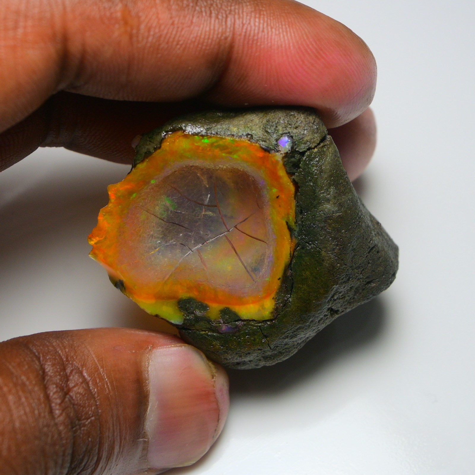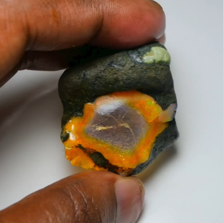SUNSHINE GEMS Discover the Magic of Natural Ethiopian Opal Each piece of our Specimen Grade Natural Ethiopian Opal Rough is a singular, stunning example of the raw beauty Mother Earth creates. These opals are directly sourced from the world-renowned Welo region of Ethiopia, known for producing opals with some of the most vivid, diverse, and large-scale color plays seen in nature. This rough is categorized as a display specimen due to its magnificent fire and sensitivity to drying. ✨ GEMSTONE SPECIFICATIONS Please refer to the specific listing details for the exact weight, size, and color play of the opal you are purchasing. Feature Detail Type Specimen Grade Natural Opal Rough Origin Welo, Ethiopia Weight 142.85 Carats Size 40x34 MM Color Exceptional Multi-Fire – Vivid blue, green, red, orange, violet flashes visible across the stone. Treatment 100% Natural - NO smoke, dye or heat treatment. Condition Uncut, raw, and intended exclusively for display or collection. Clarity Opaque to Semi-Translucent with excellent color bar visibility ⚠️ CRITICAL CARE INSTRUCTION: MUST KEEP WET ⚠️ This specimen-grade opal is hydrophane and will crack if it dries. It is suitable only for collectors who understand how to maintain wet display rough. To preserve its structural integrity and vibrant fire, this specimen MUST be kept in a sealed environment with water. Recommended Storage: Use a sealed jar, container, or specialized display cabinet filled with distilled water. DO NOT attempt to cut, polish, or allow this specimen to dry. Selling AS-IS for collection purposes only. These Specimen Opals are perfect for: Serious Collectors: Add an impressive, rare, and large natural opal specimen to your high-end mineral collection. Museum Display: A striking example of raw Ethiopian Welo fire. Note: This material is NOT suitable for lapidary work or jewelry design. Shipping & Delivery: FREE Standard International Shipping on every order. Specialized Shipping: Shipped securely in a small sealed container with water to prevent drying during transit. Ships within 1-2 business days of cleared payment. Expedited shipping available at an additional cost – message us before checkout. Returns & Satisfaction Guarantee: 30-Day Return Policy – Hassle-free returns accepted if you’re not satisfied. Condition Requirement: Buyer must return item in its original, wet, unaltered condition. Returns of cracked/dried material will not be accepted. Your satisfaction means everything – we’re here to help with any questions or concerns. ℹ️ About Sunshine Gems At Sunshine Gems, we specialize exclusively in sourcing and providing the highest quality Ethiopian Opal Rough. Our deep connection to the Welo region allows us to work directly with local miners and suppliers, ensuring we offer premium-grade material at the best possible prices. What sets us apart: Direct-from-Source: Eliminating middlemen means better prices for you. Hand-Selected Quality : We personally vet and select every piece, focusing on stability, fire, and structural integrity (or, in this case, the most impressive display qualities). Ethical Practices: All our stones are ethically sourced, supporting fair trade and responsible mining within the community. Expertise You Can Trust: Years of experience working with opal collectors and international buyers. Explore the Beauty of Earth’s Fire – A True Collector’s Treasure. Thank you for choosing Sunshine Gems, your trusted source for authentic Ethiopian Opal rough. You’re acquiring a rare piece of natural, fiery wonder intended for display. Questions? We’re happy to help – feel free to send us a message anytime!
