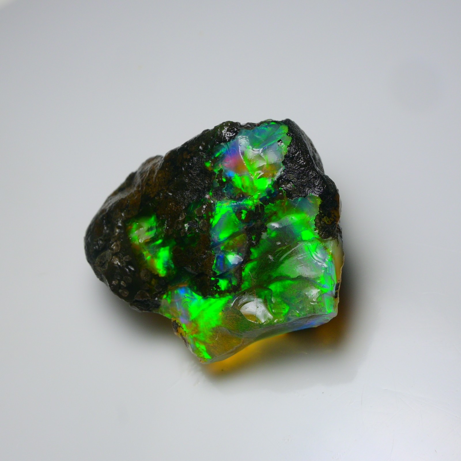 SUNSHINE GEMS Discover the Magic of Natural Ethiopian Opal Each piece of our Specimen Grade Natural Ethiopian Opal Rough is a singular, stunning example of the raw beauty Mother Earth creates. These opals are directly sourced from the world-renowned Welo region of Ethiopia, known for producing opals with some of the most vivid, diverse, and large-scale color plays seen in nature. This rough is categorized as a display specimen due to its magnificent fire and sensitivity to drying. ✨ GEMSTONE SPECIFICATIONS Please refer to the specific listing details for the exact weight, size, and color play of the opal you are purchasing. Feature Detail Type Specimen Grade Natural Opal Rough Origin Welo, Ethiopia Weight 239.40 Carats Size 52x40 MM Color Exceptional Multi-Fire – Vivid blue, green, red, orange, violet flashes visible across the stone. Treatment 100% Natural - NO smoke, dye or heat treatment. Condition Uncut, raw, and intended exclusively for display or collection. Clarity Opaque to Semi-Translucent with excellent color bar visibility ⚠️ CRITICAL CARE INSTRUCTION: MUST KEEP WET ⚠️ This specimen-grade opal is hydrophane and will crack if it dries. It is suitable only for collectors who understand how to maintain wet display rough. To preserve its structural integrity and vibrant fire, this specimen MUST be kept in a sealed environment with water. Recommended Storage: Use a sealed jar, container, or specialized display cabinet filled with distilled water. DO NOT attempt to cut, polish, or allow this specimen to dry. Selling AS-IS for collection purposes only. These Specimen Opals are perfect for: Serious Collectors: Add an impressive, rare, and large natural opal specimen to your high-end mineral collection. Museum Display: A striking example of raw Ethiopian Welo fire. Note: This material is NOT suitable for lapidary work or jewelry design. Shipping & Delivery: FREE Standard International Shipping on every order. Specialized Shipping: Shipped securely in a small sealed container with water to prevent drying during transit. Ships within 1-2 business days of cleared payment. Expedited shipping available at an additional cost – message us before checkout. Returns & Satisfaction Guarantee: 30-Day Return Policy – Hassle-free returns accepted if you’re not satisfied. Condition Requirement: Buyer must return item in its original, wet, unaltered condition. Returns of cracked/dried material will not be accepted. Your satisfaction means everything – we’re here to help with any questions or concerns. ℹ️ About Sunshine Gems At Sunshine Gems, we specialize exclusively in sourcing and providing the highest quality Ethiopian Opal Rough. Our deep connection to the Welo region allows us to work directly with local miners and suppliers, ensuring we offer premium-grade material at the best possible prices. What sets us apart: Direct-from-Source: Eliminating middlemen means better prices for you. Hand-Selected Quality : We personally vet and select every piece, focusing on stability, fire, and structural integrity (or, in this case, the most impressive display qualities). Ethical Practices: All our stones are ethically sourced, supporting fair trade and responsible mining within the community. Expertise You Can Trust: Years of experience working with opal collectors and international buyers. Explore the Beauty of Earth’s Fire – A True Collector’s Treasure. Thank you for choosing Sunshine Gems, your trusted source for authentic Ethiopian Opal rough. You’re acquiring a rare piece of natural, fiery wonder intended for display. Questions? We’re happy to help – feel free to send us a message anytime!