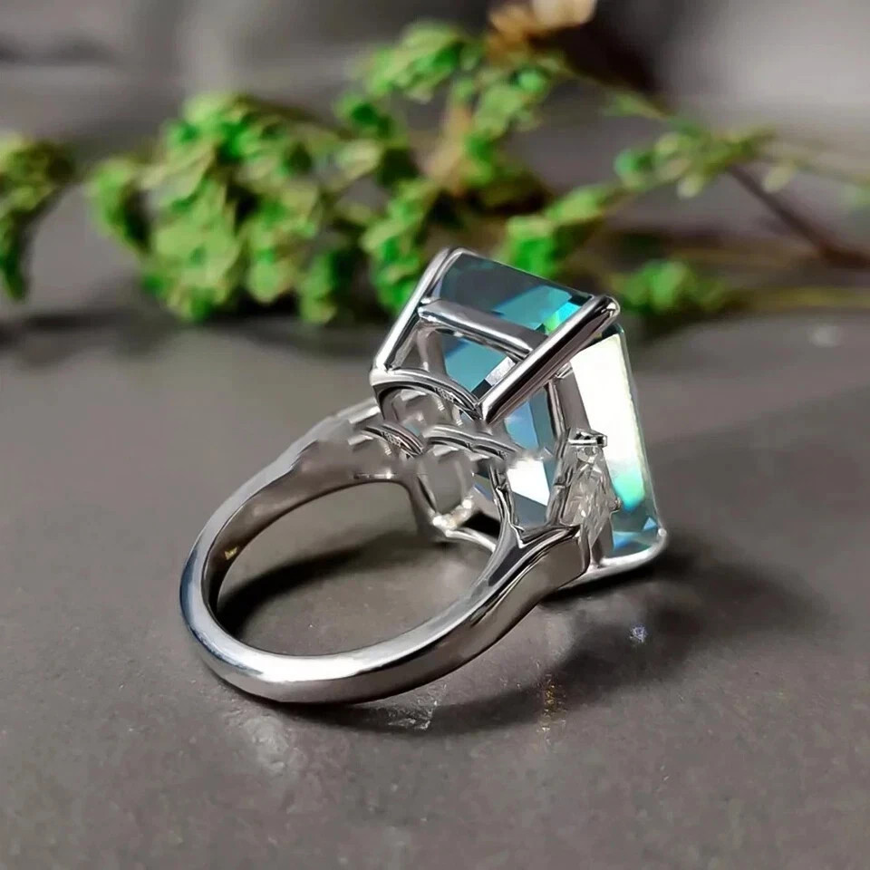ALL ITEMS WILL BE DELIVERED WITHOUT PAYING ANY TARIFFS, CUSTOM DUTIES ETC. BY YOU. BEAUTIFUL DESIGN! LATEST COLLECTION! Diamond Color - Blue Shape of Diamond - Emerald Cut Approx. Weight of Diamond - 35.10 Carat Approx. Size of Diamond - 21 mm 18 mm 12 mm Origin of Diamond - Brazil Species - Earth Mined Treated - HPHT Cut - Excellent Clarity - VVs1 Size of Ring – US 7 is default size - (Can be resized for additional $ 20.00 or default will be shipped) https://www.ebay.com/itm/404196768619 You can pay for resizing from the following link: Please copy and paste the above link in your browser Metal - Stamped 925 solid Sterling Silver Finish - White Gold CERTIFICATE OF AUTHENTICITY PROVIDED This diamond ring is handcrafted with utmost care. Would make an ideal gift for someone special. The diamond has excellent cut and luster. Comes in attractive packaging. Shipping : Shipping is by USPS/SPEEDPOST/DHL or similar shipping agencies to reach you in 9-12 business days after processing the order. Tracking is provided. For USPS the tracking will show up in transit after 7-9 days once it reaches US from India. Please note: Jewelry items can take up to 10-12business days to process to take care of ring sizing if any, polishing, finishing , packing and handling, certification, documentation etc. Shipping Charges include eBay fees on Shipping, packaging, certification costs, manpower costs, overheads, taxes etc. IN addition to actual courier/postal expenses which have increased substantially as a result of pandemic. We do not artificially increase the price of the products to include shipping charges but only charge what shipping actually costs us. Combined Shipping: Combined shipping discount is available up to 5 (Five)items in an order to be purchased within 5 days. You can continue to buy- Any additional items above 5 in quantity will be considered a new order. This is to avoid pilferage en-route as well as to ensure that you are happy with the merchandise. Once you have received their items you may buy additional items again. This limit may be revised for repeat and regular customers. Payment: Buyers are requested to pay within 3 (Three) days of purchases. eBay will automatically open unpaid item cases in case payment is not received within this period. The item will also be available for purchase to other buyers till such time that the payment is received. Customs and Taxes: Any customs duties, charges and local taxes are subject to local laws and vary from country to country and hence the payment of any eventual custom duties, charges, levies and taxes etc will be at the buyer's expense. We do not have any control on the same. Returns & Refunds: You can return the item within 14 days of receiving the parcel. - Please return in original packing. Buyers are required to check and ensure that the item/s are in good condition and as per item listing on eBay as no claims for returns and refunds will be entertained thereafter. The returned item should be unused and in original and undamaged condition. Buyer will be required to ensure that the item is sent by trackable shipper. Shipping charges are non-refundable. Refunds are made by PayPal and may take up to 5-7days after receiving back the product/s. Disputes: We aim to settle all disputes amicably. Please do not open any dispute on eBay for dis-satisfaction or for non-receipt or to return an item. We are available through ebay messages system and most messages are replied in a few hours. Personalized satisfaction is of utmost importance to us. Feedback : We always provide excellent feedback to our buyers and expect the same in return with 5-star ratings. In case of any dissatisfaction or any other reason please do contact us before leaving any neutral or negative feedback - we will strive our best to resolve all issues to your satisfaction. Metal : Silver is 925 Sterling Silver with Nickel Free Rhodium Plating. Please refrain from buying if you have allergic reaction to metals. We will not be responsible for any health problems in this regard. Legal Disclaimer : Refund or any claim liability for the buyer is only limited to the value of the item purchased. No additional claims will be entertained for any other reason whatsoever. Please note that since various labs may have different testing methods and the interpretation of all our Diamonds and Stones may differ from one lab to another as well as from one Gemologist, appraiser and Jeweler to another, we will be unable to accept another Lab Certificate or the judgement of any other third party including any Gemologist, appraiser, Lab, Jeweler etc. By consenting to buy our items it is understood that you have read, understood and agree to the terms and conditions as well as the FAQ for the Diamonds and Jewelry being sold buys. FAQ What are Color Diamonds? These are genuine Colored Diamonds found naturally mines mainly from Brazil. They are more porous than White Diamonds and are found in the upper layers of the ground relative to the White Diamonds that are mined deep. Some scientists are of the opinion that their origin maybe a Meteor that impacted earth Billions of years ago. What is their nature? Colored Diamonds are not found in the state as they are sold. They are made from earth mined rough rock found in mines of Brazil. The Rock color varies from Light Blue, Dark Blue, Champagne, Pink, Green etc. What is the treatment process? To bring out its true color it needs to be treated. The process is a natural one employing gentle heating a high-pressure environment (HPHT) which gradually brings out the true color of the Diamond. Are any artificial colors or chemicals added? There are no artificial colors or chemicals included in the process. They are not irradiated. Does it alter the composition? The process may or may not alter the composition. It remains a true Diamond nevertheless. Once our diamonds are heat-treated, it may move the molecules. This causes them to not always test properly with a ha