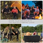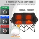 Our Store heated double outdoor chair features 4 heating zones and 3 adjustable heating levels with USB-powered heating technology (Output: 5V/2A, battery is included ). Long Press The Button to Control on/off, and short press the button can easily adjust 3 heating levels for back and seat ( 122°F/ 113°F/ 104°F ). Keeping you warm and safe for cold baseball football games, or other outdoor activities. Durable oxford fabric make the chair extra sturdy. Stable steel frame construction make it can support up to 550 lbs. Enough load-bearing capacity for two adults to sit down at the same time, and enjoy the warmth together brought by this heated outdoor chair. You can easily fold and open it in a minute. We will provide a closing strap and a beautifully carry bag with carrying strap, you can put it on the car or carrying it on your shoulder to outside, this heated portable chairs for adults will provide you with a relaxing and pleasant outdoor experience. 【 4 Heating Zones 】Our Store heated double outdoor chair features 4 heating zones, Separate temperature control on each side. One button on each side simultaneously controlling the heating of the backrest and seat. Provides the ultimate warmth and comfort for your body in cold weather, keeping you warm and comfortable at any outdoor sports, beach, lawn, picnic activities. 【 3 Levels of Temperature 】Designed with 3 heat settings (green for low, blue for medium, and red for high). A simple push of the button can warm up your seat. Works with any USB battery pack ( Battery is Included) and lasts for hours. Simply plug the USB cable into the USB Port of your battery and warming up your portable camp chair. The chair needs to be kept plugged in during working. 【 High Durability & Stabilit y】Foldable Hard Alloy steel frame with coating prevent corrosion and fading. Durable oxford fabric make the chair extra sturdy. Stable steel frame construction make it can support up to 550 lbs . Enough load-bearing capacity for two adults to sit down at the same time, and enjoy the warmth together brought by this heated outdoor chair. 【 Portable and Foldable 】No worry about assembly and carrying, you can easily fold and open it in a minute. We will provide a closing strap and a beautifully carry bag with carrying strap, you can put it on the car or carrying it on your shoulder to outside, this heated portable chairs for adults will provide you with a relaxing and pleasant outdoor experience. 【 High Quality After-sale Service 】Our Store is committed to providing customers with the best shopping experience and high-quality after-sales service. If you have any questions, please do not hesitate to contact us immediately, and we will answer your questions within 24 hours. Friendly customer service is always there for you. And We guarantee 12-month warranty. Come and have a try ! user's manual
