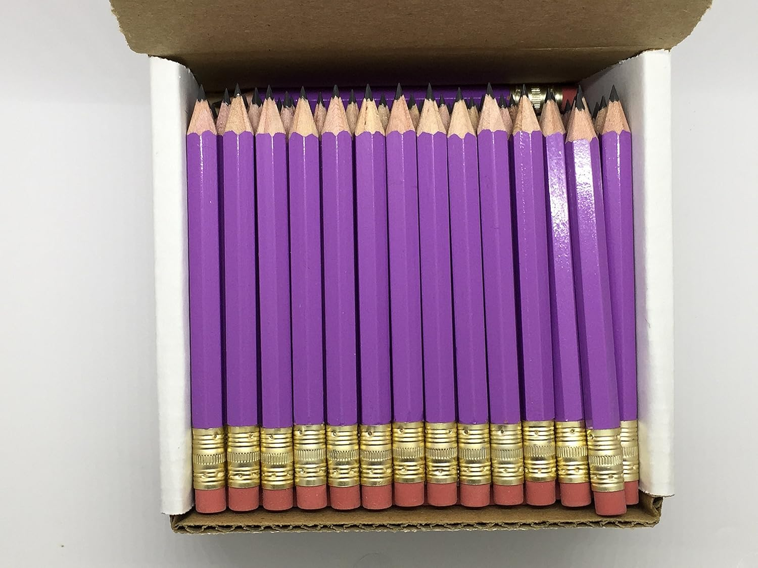 Store New Arrivals Add to Favorite View Feedback Half Pencils with Eraser - Golf, Classroom, Pew, Short, Mini, Small. Church, Non Toxic - Hexagon, Sharpened, 2 Pencil, Color - Lilac (Purple), Box of 72 (1/2 Gross) Golf Pocket Pencils™ Description Item model number Lilac (purple) Golf Hex Pencils/72 box Item Weight 8 ounces Writing Instrument Form Graphite Pencil Pencil Lead Degree (Hardness) HB Color Lilac (purple) Material Type Wooden barrel, soft effective eraser, #2 graphite HB lead, Laytex Free Erasers Brand Express Pencils Line Size 0.5mm Grip Type Hexagon Manufacturer Part Number Half-lilac72 Ink Color Pink,White Manufacturer Express Pencils Age Range (Description) Adult Size 72 Count (Pack of 1) Point Type Fine Product Dimensions 4 x 2 x 4 inches Number of Items 1 Box of 72 Golf Pocket Pencils Sharpened, hexagon shaped, Lilac (purple) color with pink/red eraser. Express Pencils Small Short Mini Half Pencils, #2 HB Graphite lead. Includes White Sturdy Storage Box Ideal for Score Keeping, Pews, Classroom, Parties, Events, Anywhere Encourages better palmer arch and firmer grasp Made in the USA -PMA Approved - Non Toxic Save money with these high quality wooden half pencils. They have an eraser which will last as long as the pencil! These pencils and sturdy white storage box are made in the USA and are PMA approved. They have so many uses, it is left only to your imagination. Box of 72 Lilac (purple) golf Pocket Pencils hexagon shaped so they don't roll off your desk! Great for school, office, church or home use. ABOUT US We offer the best prices around on high quality products. Our E-store includes media such as books, movies, music and games while offering electronics, toys, sporting apparel, clothing, tools, general home, garden items and more. SHIPPING We are always working hard to ensure your package arrives as soon as possible. Please understand that some factors like weather, high postal traffic, and the performance of shipping companies are outside of our control. We offer free shipping to the lower 48 states and ship within 2 business days of payment, usually sooner. We do not accept P.O. Boxes. Please provide a physical address. RETURNS We offer a 30-Day Return Policy on items which you are not completely satisfied with. You have the option for a full-refund or an exchange of the item. No returns are available on items shipped outside of the USA. PAYMENT We accept PayPal. CONTACT US This page content is yet to come Please ad us to your favorite seller and visit again later Thank You
