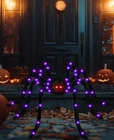 Halloween Decorations Giant Spider Light up Black Hairy Scary Spider with Red Lighted Eyes Battery Operated Fake Spider Party Favor Haunted Yard House Indoor Outdoor Decor 【Realistic and Giant Light-Up Halloween Spider】2 pack 59 in (150 cm) large lighted halloween spider features a realistic black hairy body, each with 36 LED purple lights, and 2 red glowing eyes, perfect for creating a terrifying Halloween atmosphere; 【Battery-Powered with Timer】Requires 3AA batteries (NOT included), 6-hour auto on/18-hour off cycle, making it easy to set up and enjoy with hassle-free Halloween decor; 【Versatile Lighting Modes】Choose from 8 different lighting modes to suit your Halloween decor needs, including steady on, wave, twinkle, and more to create a customized spooky ambiance; 【Flexible and Easy to Store】All legs of the spider are bendable and stretchable, allowing for easy hanging on porches, windows, fences, and more. Easy to fold and store for reuse year after year; 【Indoor and Outdoor Use】Perfect for Halloween decorations both indoors and outdoors, ideal for haunted house props, themed parties, front porches, windows, and more to add a frightful touch to any space; 【Durable and Reusable】Made from high-quality materials, this Halloween spider decoration is built to last for years of scares and thrills, adding fun and fear to your Halloween celebrations.