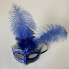 Venetian Halloween Eye Mask Women Blue Feather Glitter Masquerade Mardi Gras Item: 638674 Colors: Blue, Silver, Purple Condition: New with tag - Elaborate blue feather accent - Embellished with glitter Thank you for your interest. Shelf CLOTHING AND FABRIC ITEMS: All clothing and fabric items have been steam cleaned and/or washed per eBay standards.