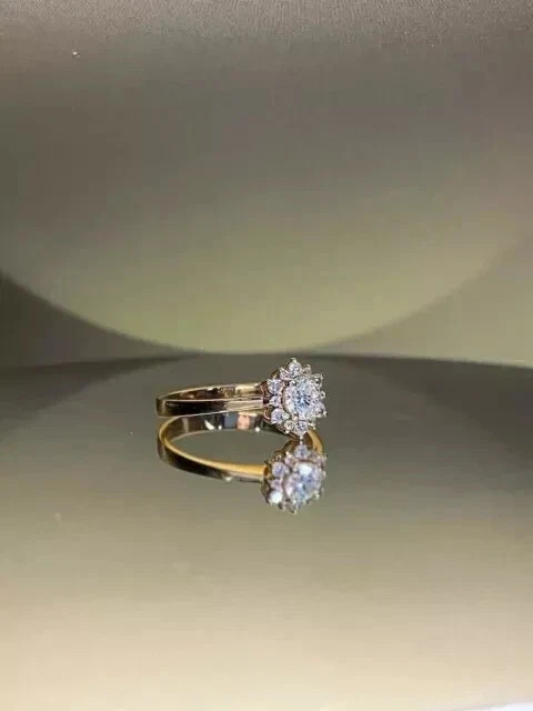 $ 66.02Ct Round Cut Lab-Created Diamond Halo Engagement Ring 14k Yellow Gold Plated