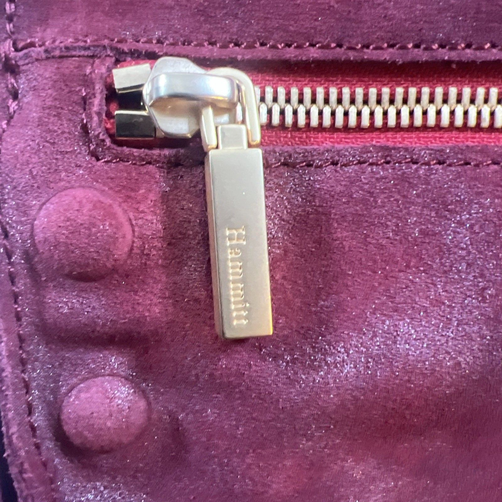 The Hammitt Tony Leather Brushed Small Crossbody Purse in red suede is a stylish and functional accessory for women on the go. This small crossbody purse features a zip closure, gold hardware accents, and a detachable strap for versatility. The red exterior and lining, combined with the brushed finish, make it a standout piece that can easily elevate any outfit. Made by the reputable brand Hammitt, this purse is crafted from high-quality leather, ensuring both durability and a luxurious feel.