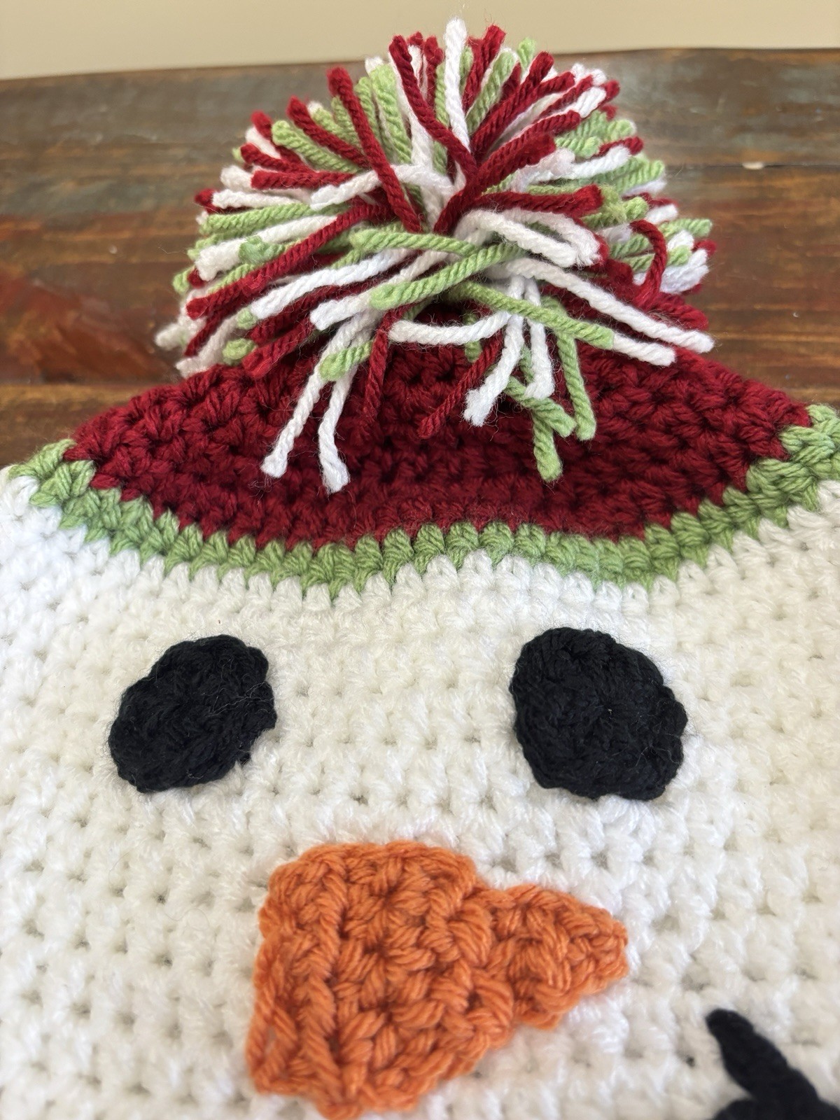 The Hand Crocheted Snowman Beanie Hat for adults is a unique and charming accessory, perfect for keeping warm and adding a festive touch to your winter wardrobe. Made with care and attention to detail by hand, this beanie features a cozy design with a playful snowman accent. The handmade quality adds a special touch to the overall look, making it a standout piece in your collection. Ideal for both practicality and style, this snowman beanie hat is sure to be a fun and stylish addition to your winter wardrobe.