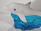 You get everything in the picture, beautiful hand painted hand crafted decorations made of sand. Made in Usa, ships next day. Thank you! This set of 2 dolphin figures is made of sand and hand-painted in a whimsical style. Each sculpture measures 8x8 inches and is crafted in the USA. Perfect for collectors of marine-themed figurines or dolphin enthusiasts, these unique pieces add a touch of creativity to any space. Made with attention to detail and quality, these sculptures are sure to be a conversation starter for anyone who appreciates animal-themed decor.