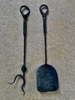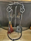 Beautiful hand forged in New Mexico using 95% recycled steel in Rustic Black. Twisted metal detail on stand. Perfect condition, never used. Attractive addition to a wood burning fireplace. Original price $1,650. Tools included: poker, broom, shovel and tongs, all about 26" long. Stand is 32" high, base 17" wide x 10" deep. Ships UPS.
