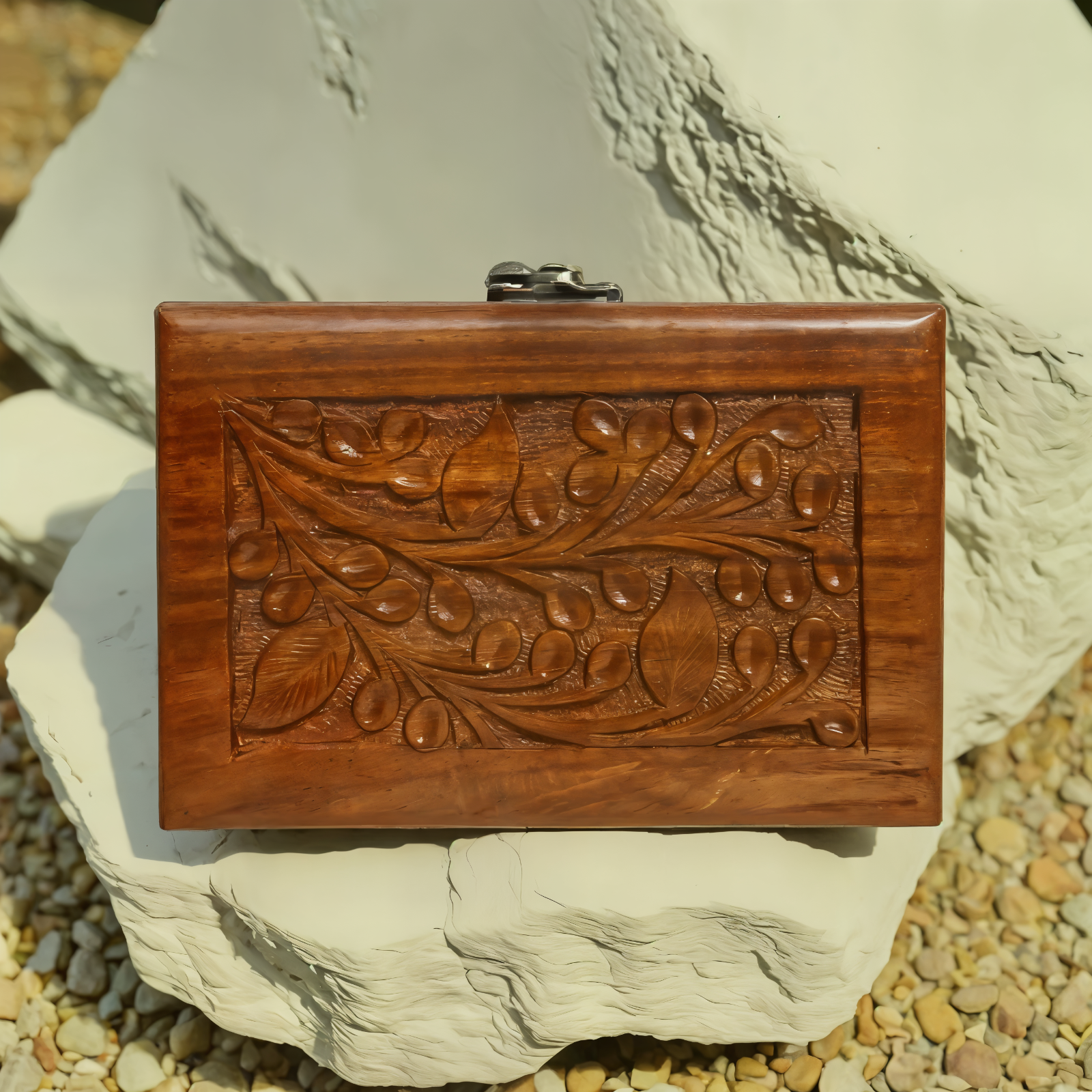 Product Description: This exquisite hand-carved wooden jewelry box is a perfect blend of elegance and craftsmanship. Made from high-quality wood, it features intricate carvings and a luxurious red velvet interior to protect your precious items. Ideal for storing jewelry, keepsakes, or small treasures, this handmade box adds a touch of sophistication to any space. A perfect gift for loved ones! Key Features: Hand-carved wooden jewelry box with intricate detailing Soft red velvet interior for added protection Perfect for storing jewelry, keepsakes, and valuables Elegant and timeless handmade craftsmanship Ideal as a gift for special occasions