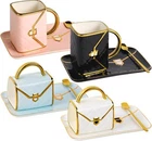 3D Design Handbag Coffee Mug Set of 4: You will receive 4 sets of handbags ceramic coffee mugs with spoons and saucers in blue, pink, black and white colors, a total of 4 pieces of approx, can meet your daily use and replacement needs Ceramic: our purse mugs and saucers are made of quality ceramic, safe and reliable, not easy to fade, heat stable, reusable and easy to clean, and the spoon is made of shiny metal; Allows you to enjoy coffee and afternoon tea in a relaxed and peaceful way Unique Handbag Coffee Mug Sets: Boasting a unique and stylish design that emanates an elegant and noble temperament. Featuring a rhombus pattern on the surface with a bright glaze and gold-plated accents. Making it a must-have for any coffee lover Perfect Capacity: Handbag Coffee Mug with a generous 10.5-ounce (310ML) capacity, perfectly meets the needs of coffee and tea enthusiasts. The mug is crafted through high-temperature burning up to 660℉, making it ideal for both hot and cold drinks Ideal Gift: The purse coffee mug has an elegant look and a silky touch that's attractive enough to comple ment other tableware. Handbag shaped coffee mug are also ideal gifts to bring minimalism and happiness to your family and friends