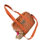 Handbag Crossbody Bag for Women Large Capacity Bag Travel Soft Diaper Bag Features: Embracing the charm of functionality and with our quilted bear bag, a must have accessory for mother. This bag features a playful charm that adds a touch to its quaint aesthetic. Designed for women who like fashion trends, this bag is for stylish consumers seeking to expressing their unique personality. Whether you're out shopping, traveling, or enjoy a casual date, this quilted bear bag keeps your essential like phones and wallets organized and at hand. Elevates your everyday look with this bag that not only serves as a practical diaper bag but also stands out as a fashionable statement in any setting. Specifications: Component: Polyester Inner Component: Polyester Size: About. 27x24x10cm/10.63x9.45x3.94in Color: Light Blue/Light Orange Package Includes: 1pc Shoulder Bag note: Please allow 1-3cm errors due to manual measurement. Due to difference between different monitors, the picture may not reflect the item actual color.