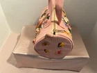This handmade duffle bag by Lotus Embroidery is a limited edition piece that's perfect for both casual and workwear occasions. The canvas and silk ribbon embroidery exterior features exquisite silk ribboned flowers that are hand-embroidered, making it a truly unique piece. The bag has an oval shape, measures 9 inches in width, 6 inches in height, and 4.5 inches in depth with double handles that have a 4-inch drop. The bag comes with a detachable strap that can be adjusted from 11 to 23 inches in drop length, making it an excellent cross-body option. Its hardware is made of brass with a gold finish, and it features a zip-around closure for added security. The interior is lined with fabric and has inner and outer pockets, making it functional as well as stylish. The bag also comes with a matching pouch wallet featuring the same delicate floral embroidery. We have a 30 day return/refund policy if you have an issue. Purse must be in unused, undamaged condition unless damage occurred in transit. In that case, keep packaging, take pictures, contact me via ebay messenger and go to local post office. I use USPS priority or ground advantage, which provides tracking and insurance. Return postage paid by seller if mistake made, paid by buyer for change of mind. Every purse with this embroidery has been praised and often buyer orders matching accessories, wallet, mirror, mini wallet, etc.