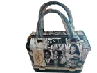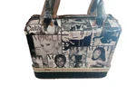 This stunning handbag is a must-have for any fashion-forward woman. With a unique collage design featuring some of the most iconic women in the world, including Rihanna, Michelle Obama, and Beyonce, this bag is sure to turn heads. The black and white exterior color gives it a chic and timeless look, while the gold hardware adds a touch of luxury. The bag is large in size, measuring 13 inches in width, 11 inches in height, and 5 inches in depth, making it perfect for any occasion, whether it's a casual day out or a party/cocktail event. The bag is made of high-quality vinyl and lined with beige fabric, ensuring durability and style. With a zip closure, this bag is easy to open and close, making it perfect for everyday use.
