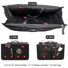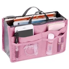 Design--The handbag organizer insert for bigger handbags is designed with 13 pockets, allowing you to find the most urgent things at a glance, which is very thoughtful and practical. Material--The handbag organizer insert is made of high-quality nylon, waterproof, strong and durable, not easily damaged, easy to clean with a wet towel, foldable and lined to keep its shape well and to help you for a long time. Portable--The purse bag organizer insert is lightweight, small, and portable, which is great for helping you carry more of your essentials when you're traveling, and you can also fold it up when you're not using it, without taking up extra space. Daily use--The purse organizer insert for handbags can hold things you need on a daily basis, such as toiletries, keys, mobile phone, cards, notebooks, travel items, etc. Applications--Our purse organizer insert for handbags are specially designed for travel, making storage easier. Ideal for travel, office, business, home, toilet storage, and more. Product Description Features: Do you often have trouble finding something because it's lying around? Are you looking for a great organizer for small things? Our handbag organizer insert for bigger handbags offers a satisfactory solution to this problem and it can help you well in this regard. The 13 pockets make it possible to hold more things like nail clippers, change, lipstick, keys, headphones, cosmetics, etc., which is very convenient. We have 4 different color specifications for you to choose from, grey, purple, pink, and black, so you can choose one of them to take home according to your needs and preferences.
