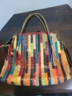 Brand new Faux Leather with Snakeskin Pattern Multicolor Patchwork Purse Handbag Two Handles W/Shoulder Strap. The colors and style of this purse are most remarkable. It is a statement accessory by size alone 18" height x 15" wide x 5" deep. The feel of the patent leather is nice. It is a quality, unbranded designer handbag. Use the 8" drop handles or the strap for cross body carrying. It is clean, unused, and ready to work for you!