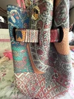 Very Unique Mercedes Machado Zing Handbag that is Brand New. Front says LA Danes Des Amazones. Has Toucans on one side. See all photos. From my research I found that it is a small production piece. Some call it a Tote as well. It has a gold lock and key as well as a long strap that clips on to the bag. I had never seen a bag like this when I bought it from an estate sale. So I started from Scratch in my research as it is unmarked as far as can see. It measures 12” across by 9” high. A conversation piece for sure!