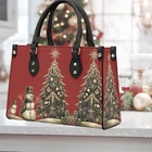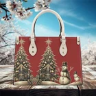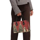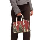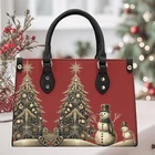Handbag shoulder bag purse tote Vegan leather Christmas Holiday snowmen gold