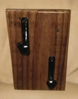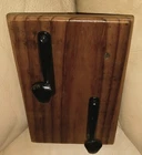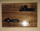 2 thick Black metal hooks mounted on reclaimed old fence wood. The wood and hooks have several coats of acrylic clear semi gloss for protection. Hang in in the kitchen, bathroom, pool house or the entry way. Great for towels, handbags, belts or hats. It measures 7-3/4" tall x 5-1/4" across x 1/2" thick. It has 2 saw tooth hangers on the back. Please see all photos and read the item description before buying. Thanks for shopping my eBay store. Check out my eBay Store for more unique one of a kind designs.